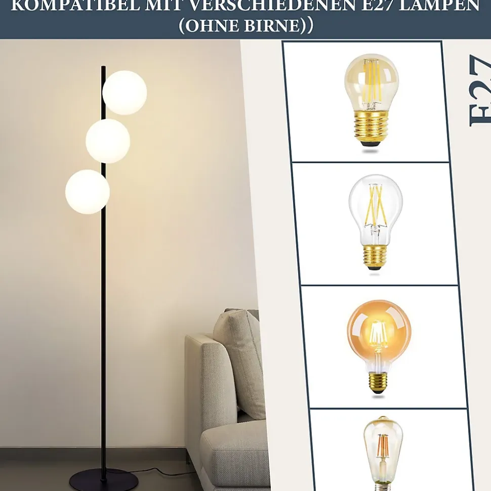 【Matériaux de haute qualité】Ce lampadaire est composé de métal de haute qualité, d’une base noire antidérapante + d’une tige métallique noire + d’un abat-jour en verre blanc laiteux + d’un interrupteur à pied. L’abat-jour en verre de haute qualitéavec une diffusion douce et uniforme de la lumière et une haute transmission lumineuse crée une atmosphère chaleureuse et confortable et rend votre espace de vie élégant et confortable.【Douille E27 standard】Ce lampadaire est compatible avec une douille E27, ce qui vous permet de choisir différents types d’ampoules en fonction de vos préférences pour créer différents besoins d’éclairage et d’ambiance(Max.25WX3 sans ampoule)【Stabilité et praticité】Le lampadaire a un socle métallique rond avec une structure antidérapante sur la partie inférieure pour offrir un support stable. Conception simple de l’interrupteur à pied, lorsque vous souhaitez allumer ou éteindre la lumière,il vous suffit de marcher dessus pour allumer ou éteindre la lumière sans avoir à vous pencher, pratique et rapide.【Design moderne rétro】Le design moderne rétro unique en son genre en fait un point de mire dans la décoration intérieure. Elle allie l’élégance moderne au charme nostalgique et s’adapte parfaitement à différents styles d’intérieur pour apporter unetouche tendance et personnalisée à votre intérieur.【Garantie d’achat】Nous offrons une garantie de 2 ans sur ce luminaire. Tout problème, suggestion, question ou préoccupation. N’hésitez pas à nous contacter, nous vous répondrons dans les 24 heures et résoudrons le problème le plus rapidement possible.