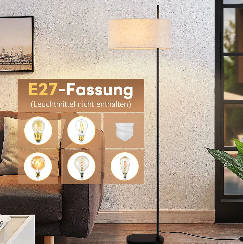Design simple : le lampadaire de salon impressionne par sa finition de première classe et la combinaison astucieuse d’un pied en métal noir et d’un abat-jour en tissu. Le design classique et simple crée une atmosphère chaleureuse et confortable, parfaite pour différents styles de vieAbat-jour en tissu : l’abat-jour de ce lampadaire est fabriqué en tissu de haute qualité et soigneusement confectionné. Il peut filtrer efficacement l’éblouissement et émettre une lumière douce et confortable, offrant une excellente expérience de lecture. Dimensions : 40 cm x 18 cm. Ce lampadaire est idéal pour l’éclairage intérieurStable et durable : la base du lampadaire de style rétro est constituée d’une tige en métal noir robuste et offre donc un support particulièrement bon. La hauteur de la lampe est de 154 cm et la largeur est de 40 cm. En combinaison avec le pied épais, le lampadaire tient fermement et ne bascule pas – cela empêche de manière fiable les enfants ou les animaux domestiques de le renverser. Ce lampadaire robuste et attrayant est parfait pour tout espace industriel rétroLibre choix : le lampadaire de salon convient aux ampoules E27 (maximum 40W chacune). Cela vous permet de choisir une source de lumière en fonction de vos préférences de température de couleur et de luminosité. Cela vous donne plus de contrôle pendant l’utilisation et la flexibilité nécessaire pour répondre aux besoins et conditions spécifiques de votre espace afin de garantir un éclairage optimal et une expérience visuelle agréable (sans ampoules).Facile à utiliser : le lampadaire de style vintage est livré avec un manuel d’instructions et tout le matériel d’installation nécessaire. Vous pouvez facilement installer l’ampoule vous-même. L’installation est rapide et facile. Convient à diverses pièces telles que le salon, la chambre à coucher, le bureau, etc. Il peut être utilisé à la fois comme éclairage intérieur général et comme lampe de lecture