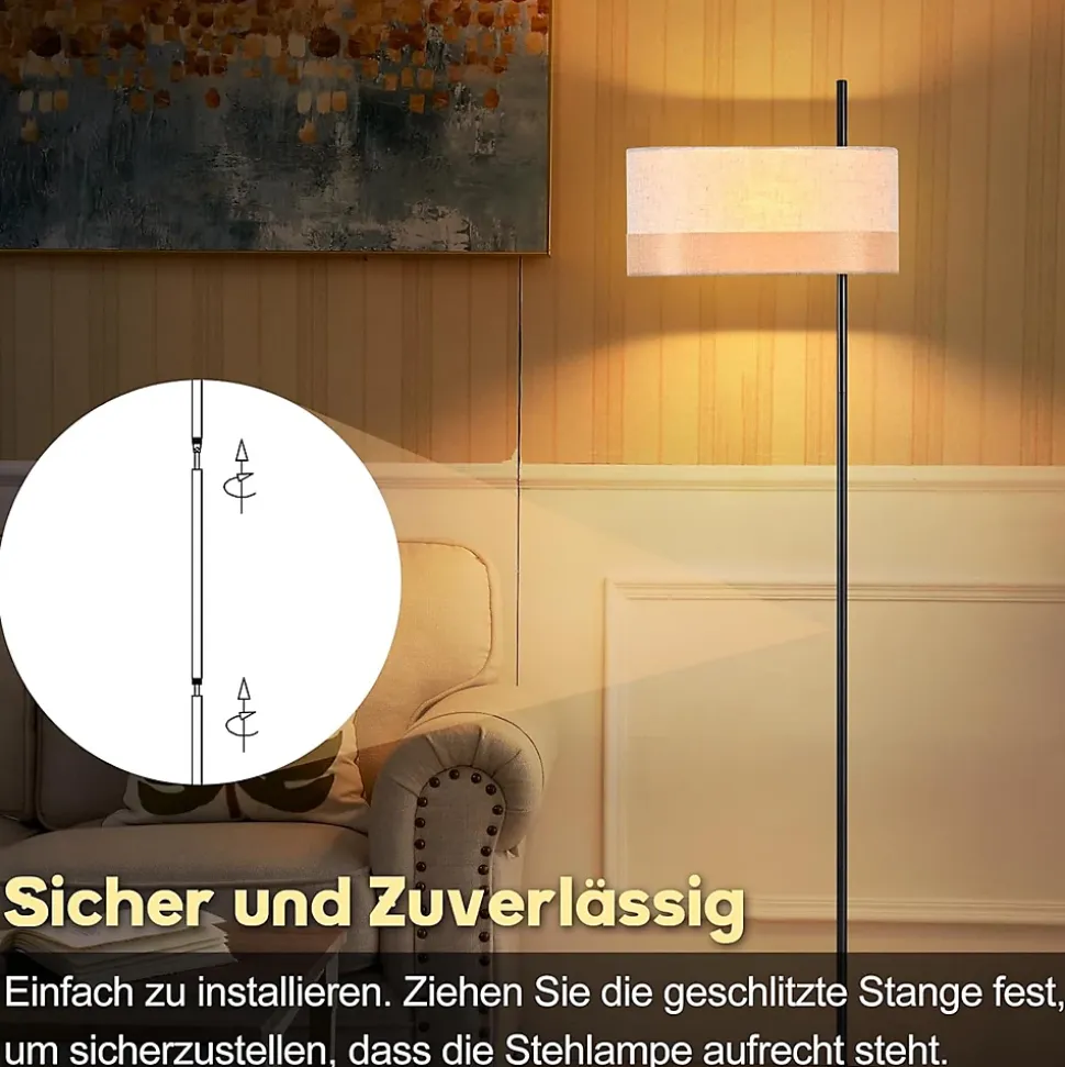 Abat-jour en Tissu : L’abat-jour de ce lampadaire Nettlife est fabriqué en tissu de haute qualité (40 cm x 18 cm). Il filtre efficacement l’éblouissement et diffuse une lumière douce et agréable, offrant une excellente expérience de lecture. Le tissu est résistant aux plis, à la chaleur et facile à nettoyer, garantissant une longue durée de vie.Stable et Durable : Le corps principal de la lampe rétro est en fer, résistant à la corrosion. La structure en fer a une bonne capacité de charge et, associée à la base métallique robuste, assure que la lampe reste stable dans divers environnements.Douille Standard E27 : Ce lampadaire de salon rétro est adapté aux ampoules E27 (max. 40W). Vous pouvez choisir la température de couleur et la luminosité selon vos préférences pour répondre aux besoins spécifiques de la pièce. (Ampoule non incluse).Interrupteur à Pied : Le lampadaire en tissu Nettlife dispose d’un interrupteur à pied pratique. D’une simple pression du pied, vous pouvez allumer ou éteindre la lampe sans avoir à vous baisser, ce qui est idéal si vous avez les mains prises ou pour les personnes à mobilité réduite.Utilisation Facile : La lampe de lecture est livrée avec un manuel et tout le matériel d’installation nécessaire. Le montage est rapide et simple. Elle convient parfaitement aux salons, chambres, bureaux, servant aussi bien d’éclairage général que de lampe de lecture.