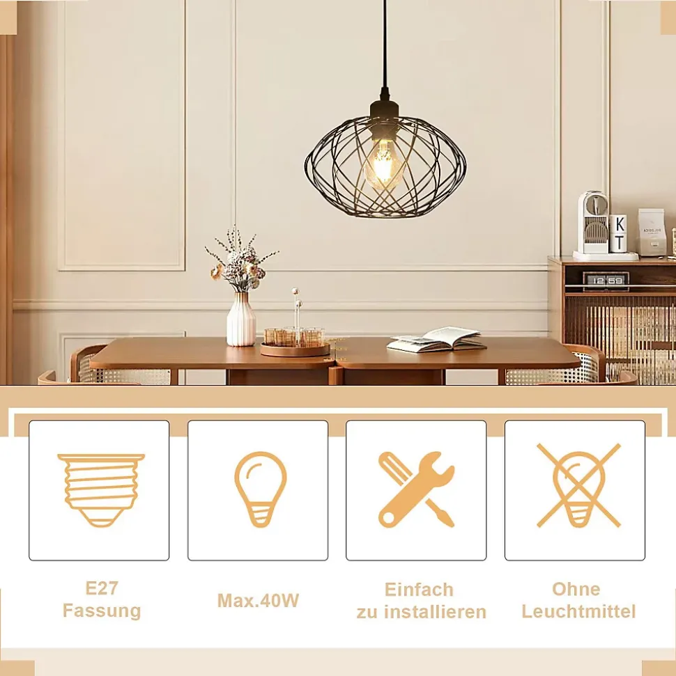 【Conception de lanterne ronde】 La suspension rétro a un design de lanterne ronde avec un style noir et simple qui intègre une atmosphère rétro. Ce design peut être facilement combiné avec différents styles de décoration pour rehausser la beauté globale de la pièce. La lampe suspendue au design abat-jour en métal noir du lustre émet une lumière douce et uniforme, créant une atmosphère chaleureuse et cosy.【Douille standard E27】 Cette lampe de salon suspendue est adaptée à la douille standard E27 et vous pouvez choisir votre source de lumière E27 préférée. REMARQUE : source de lumière non incluse. Qu’il s’agisse d’une lumière chaude et agréable ou d’une lumière vive et froide, vous êtes bien équipé avec cette lampe suspendue industrielle.【Matériau métallique de haute qualité】 La lampe suspendue noire est fabriquée dans un matériau métallique de haute qualité, ce qui garantit non seulement la stabilité structurelle de la lampe suspendue de la lampe de cuisine, mais lui confère également durabilité et beauté. La texture du matériau métallique présente un goût unique.【Applicable à plusieurs scènes】 Cette suspension vintage peut être parfaitement intégrée dans le salon, la salle à manger, la chambre, le couloir ou le bureau. Avec son design simple mais élégant, cette lampe suspendue de salle de bain peut ajouter une touche de brillance à n’importe quelle pièce.【Réglage flexible de la hauteur】 L’un des points forts de cette lampe suspendue de couloir est sa conception réglable en longueur. Lors de l’installation, vous pouvez régler la hauteur idéale pour répondre à différents besoins d’espace et d’éclairage, ajoutant ainsi une touche personnelle à votre espace de vie. Remarque : la personnalisation après l’installation n’est pas recommandée.