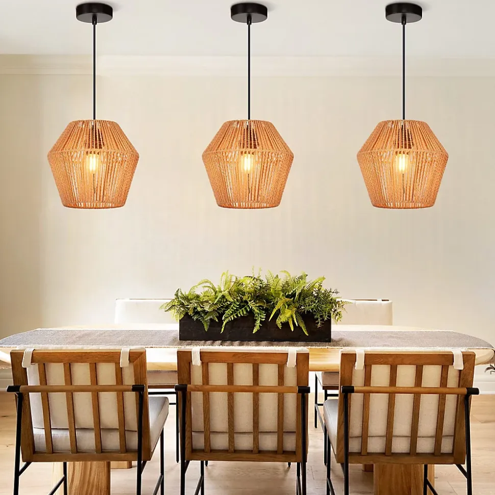 Lampe à suspension moderne en rotin tressé à la main : Cette lampe présente un design géométrique en losanges dans un style bohème vintage, parfaite pour une décoration uniqueHauteur réglable : avec un système de suspension de 150 cm, la longueur de la lampe peut être ajustée selon les besoins pour trouver l’endroit parfaitCompatible avec diverses ampoules E27 : cette suspension prend en charge différents types d’ampoules, telles que les ampoules blanc chaud, blanc neutre, blanc froid, RVB et à intensité variable. (Veuillez noter : la lampe ne contient pas d’ampoule, elle doit être achetée séparément.)Puissance maximale de 40 W : cette suspension vintage est sûre et économe en énergie, fournissant suffisamment de lumière pour vos piècesPOLYVALENT : Cette lampe suspendue s’intègre parfaitement dans le salon, la chambre, la salle à manger, la cuisine et peut également être utilisée comme lampe de lit, lampe de salon ou lampe de cuisine