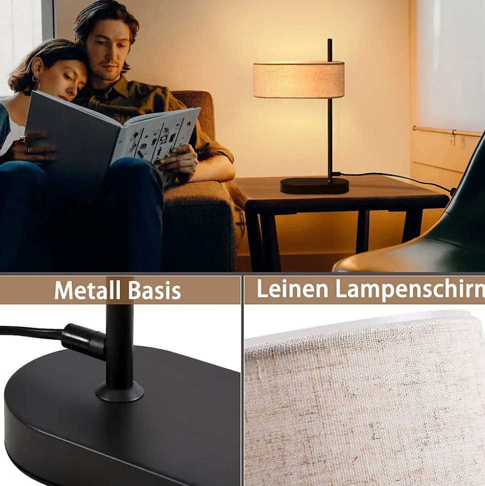 Design : La lampe de chevet a été soigneusement conçue par nos designers pour offrir un design unique alliant parfaitement esthétique et fonctionnalité. Il s’intègre harmonieusement dans n’importe quel design d’intérieur et s’intègre parfaitement dans différents styles.Construction robuste : cette lampe de table vintage est dotée d’un corps en métal peint en noir mat qui se combine idéalement avec l’abat-jour en tissu de lin. Le support de lampe est en acier inoxydable, qui ne peut pas se plier et offre une stabilité supplémentaire. La finition noire donne à la lampe un charme nostalgiqueLampe de lecture : La lampe de table convient aussi bien comme lampe de lit que comme lampe de lecture. L’abat-jour en tissu de lin filtre efficacement la lumière afin qu’elle soit répartie doucement et uniformément, ce qui est agréable pour les yeux et crée une atmosphère chaleureuse dans la maisonTaille idéale : la lampe de table est facile à assembler sans outils spéciaux et très conviviale. La hauteur est de 44,5 cm. Les dimensions du socle sont de 21 x 11 x 2 cm. L’abat-jour mesure 27 x 15 x 10 cm. Il prend peu de place et peut également servir de décorationAmpoule au choix : Pour cette lampe de table, vous avez besoin d’une ampoule E14 supplémentaire (maximum 40 W). En fonction de vos besoins, de votre décoration intérieure et de vos habitudes de lecture, vous pouvez choisir entre des lampes LED, à incandescence, halogènes ou CFL. Vous pouvez également choisir entre un blanc froid, un blanc chaud ou des changements de couleur intelligents pour obtenir différents effets de luminosité et d’éclairage.