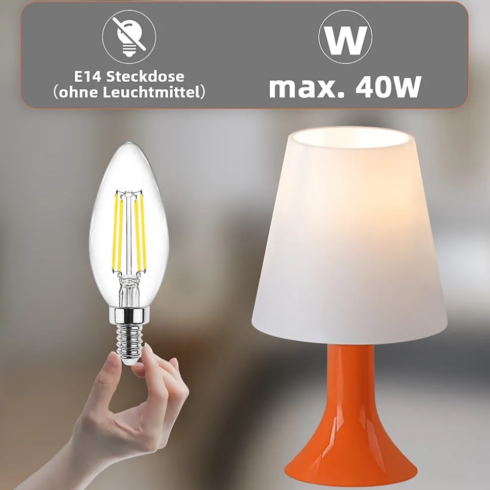 NETTLIFE Lampe de chevet lampe de table de salon avec câble – lampe de table lot de 2 petites lampes E14 orange moderne