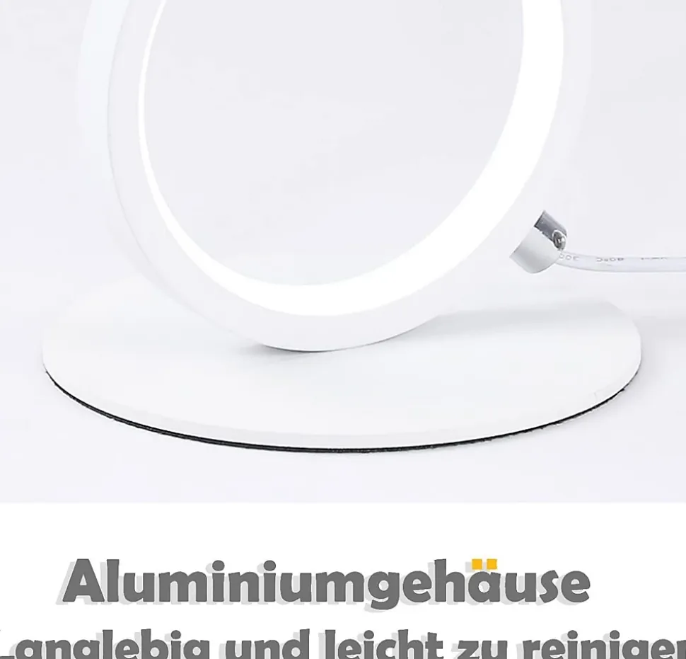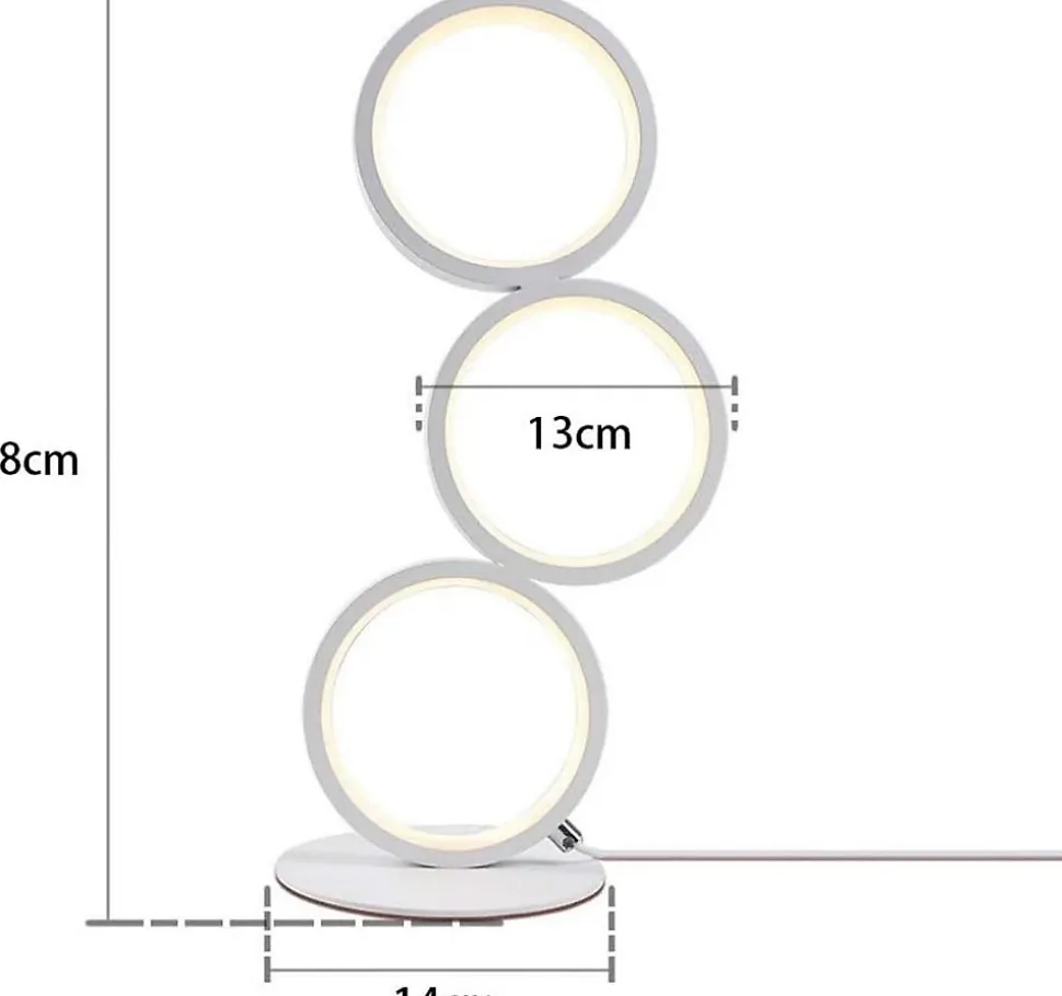 Design moderne : trois anneaux en aluminium sont intelligemment tressés ensemble pour créer une lampe de table claire et harmonieuse, créant une certaine asymétrie et individualisant l’apparenceMatériau de haute qualité : le corps de la lampe de table est en aluminium raffiné et en gel de silice, durable et facile à nettoyerIntensité variable : la luminosité peut être réglée en continu à l’aide du contrôleur sur le câble et la température de couleur peut également être réglée du blanc froid au blanc chaud. Cela vous permet de mieux ajuster la luminosité et la température de couleur à vos besoinsDonnées techniques : 38*14*17,5 cm, 12 W, max. 1000 lumens, 3 anneaux, câble de 2,9 m, dimmable, LED intégrée. Le produit a été mis à jour, il peut y avoir des différences dans les valeurs d’efficacité. Si vous rencontrez des problèmes, contactez notre service clientLampe de table multifonctionnelle : lampe de table multifonctionnelle à 3 lumières avec câble de 290 cm pour un placement polyvalent, adaptée comme lampe de table, de chevet et de travail