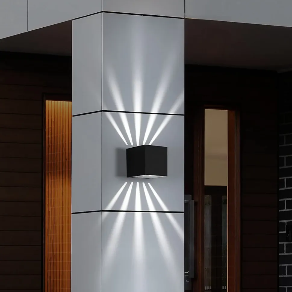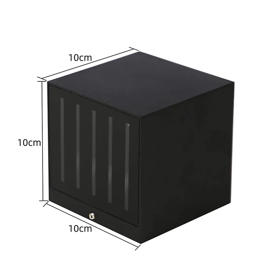 【Lampe murale LED carrée】La lampe murale LED d’extérieur séduit par son design sobre. Le boîtier est en aluminium moulé sous pression, mais a une forme de cube, ce qui donne une impression d’harmonie. La lumière à 5 rayons s’échappe vers le haut et vers le bas, ce qui est très esthétique sur le mur situé derrière.【Lumière blanche froide 6000K】La couleur de la lumière est agréablement blanche froide avec une température de couleur de 6000 Kelvin. Le module LED fixe émet une lumière blanc froid qui est diffusée vers le haut et vers le bas, de sorte qu’il n’y a pas de risque d’éblouissement. Elle s’intègre dans de nombreux environnements en raison de son apparence discrète.【IP65 étanche】Cette source lumineuse particulière est particulièrement bien protégée contre les mauvaises conditions météorologiques grâce à son indice de protection IP65. Qu’il pleuve ou qu’il vente, l’applique murale d’extérieur à LED défie toutes les conditions. Mais son aspect compact et discret permet également de l’installer sans peine sur les murs extérieurs, sans pour autant faire de l’ombre au reste du style architectural.【Détails techniques】Taille : 10*10*10cm ; Puissance : 10W ; Matériau : aluminium et verre ; Température de couleur : 6000K ; Source lumineuse LED : LED fixe ; Nombre d’appliques : 2 ; Couleur : noir ; Indice de protection : IP65 ; Tension : 230V【Application】Cette applique murale en pack de 2 est très facile à installer et à utiliser. Avec son cube et son design sobre, l’applique noire s’intègre visuellement bien dans tous les espaces extérieurs. Elle convient pour les scènes intérieures et extérieures comme les balcons, les couloirs, les jardins, la porte d’entrée, la terrasse, le garage, etc.Garantie : 2 ansLe produit a été récemment révisé et modernisé, et il arrive que les valeurs d’efficacité énergétique ne correspondent pas à la page détaillée. Si vous recevez le produit et que vous rencontrez des problèmes, veuillez contacter notre service clientèle.