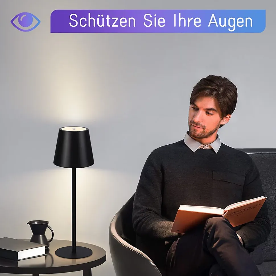 Nettlife Lot de 2 lampes de chevet LED RGB, 2600mAh, rechargeable, tactile, dimmable, noir, USB