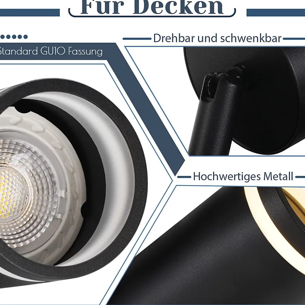Design moderne : ce spot de plafond se distingue par son aspect moderne, qui est principalement dû à l’élégante finition de surface en blanc mat. La couleur mat donne au plafonnier une touche contemporaine et offre un contraste élégant avec les intérieurs sombres.Rotatif et pivotant : les abat-jour des spots de plafond sont cylindriques et peuvent être tournés à 355° à gauche et à droite et inclinés à 180° de haut en bas grâce à l’articulation, chaque douille peut être ajustée dans n’importe quelle direction pour s’adapter à différentes zones de la pièce selon les besoins éclairerAmpoules interchangeables : les plafonniers spots sont compatibles avec les ampoules GU10 d’une puissance MAX 25 W. Vous pouvez sélectionner des culots de lampe blanc chaud, blanc froid ou RGB GU10 selon vos besoins. Remarque : les ampoules ne sont pas inclusesFacile à installer : le plafonnier est facile à assembler selon nos instructions d’installation, deux méthodes d’installation, la barre de spot robuste assure une installation facile et sûre au plafond, au mur. Les spots équipés de kits d’installation et de manuel d’instructionsDomaines d’application étendus : Le spot LED flamme au design moderne convient à de nombreux domaines : salon, chambre à coucher, couloir, chambre d’enfant, cuisine, balcon, escaliers, peintures murales, dressings, galeries, etc. questions, vous pouvez nous contacter à tout moment fournir un service client 24 heures sur 24 avec une grande efficacité
