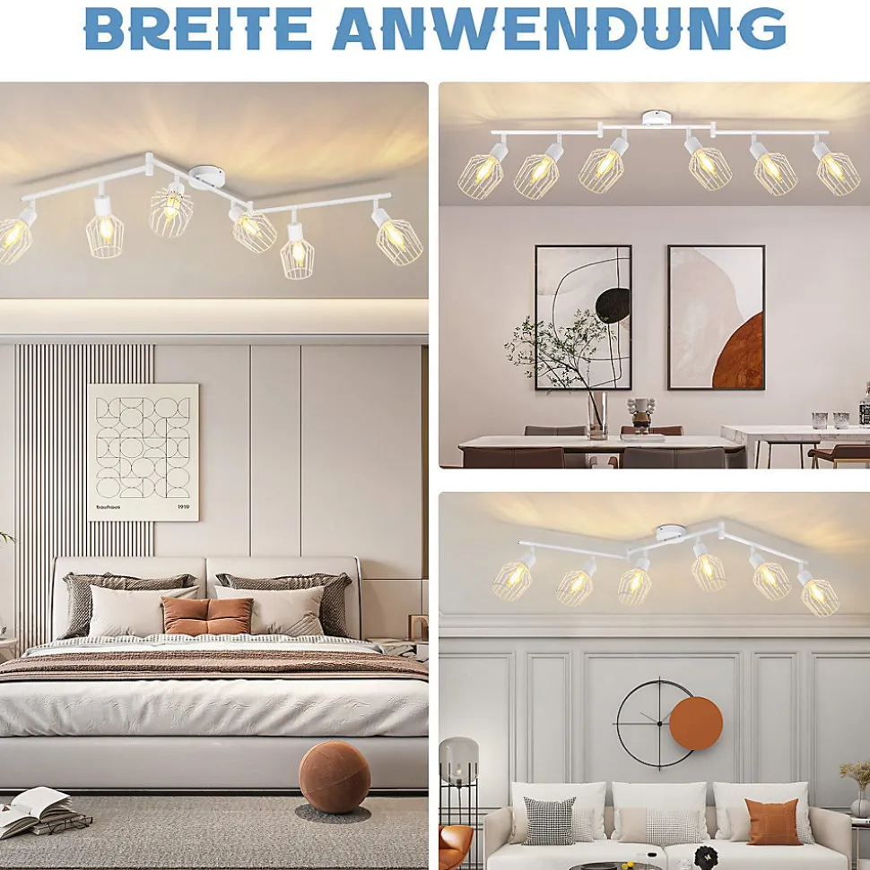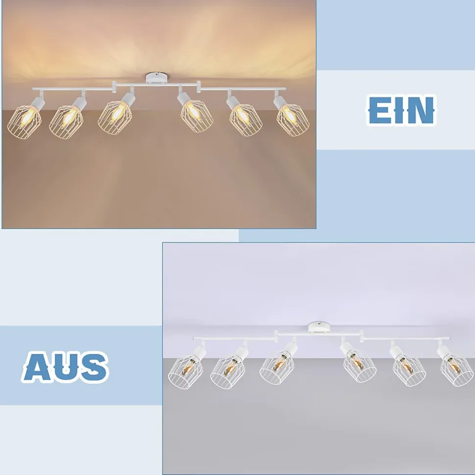 Design vintage : le plafonnier blanc est fabriqué en métal de haute qualité avec un excellent matériau et un design simple. Le fond se compose d’une base ronde et d’un cylindre blanc mat, adapté à la plupart des aménagements intérieurs.Flexibilité de la maison : la tête de rail peut être ajustée librement. La plage de rotation du spot de plafond à 6 ampoules est de 90° à 350°, vous pouvez régler librement la lumière et l’angle selon vos besoins pour éclairer différentes zones et obtenir un bon effet visuel.【Multifonctionnalité】 Le spot de plafond LED blanc convient aux couloirs, couloirs, chambres à coucher, buanderies, cuisines, bureaux, balcons et bien d’autres occasions. Il peut être monté au plafond et au mur et peut être utilisé comme applique murale, plafonnier et autres applications d’éclairage.【Ampoule non incluse】 Le plafonnier de salle de bain peut être remplacé de manière flexible par différentes sources de lumière E14, la puissance de sortie maximale est de 25 W. Vous pouvez choisir une tête de lampe blanc chaud, blanc froid ou RVB E14 selon vos besoins.【Installation facile】 Fixez le support au plafond ou au mur et installez l’ampoule E14, l’ampoule sur le support, avec les instructions d’installation et d’accessoires, vous pouvez vérifier les détails d’installation spécifiques de celle-ci.