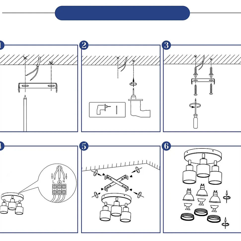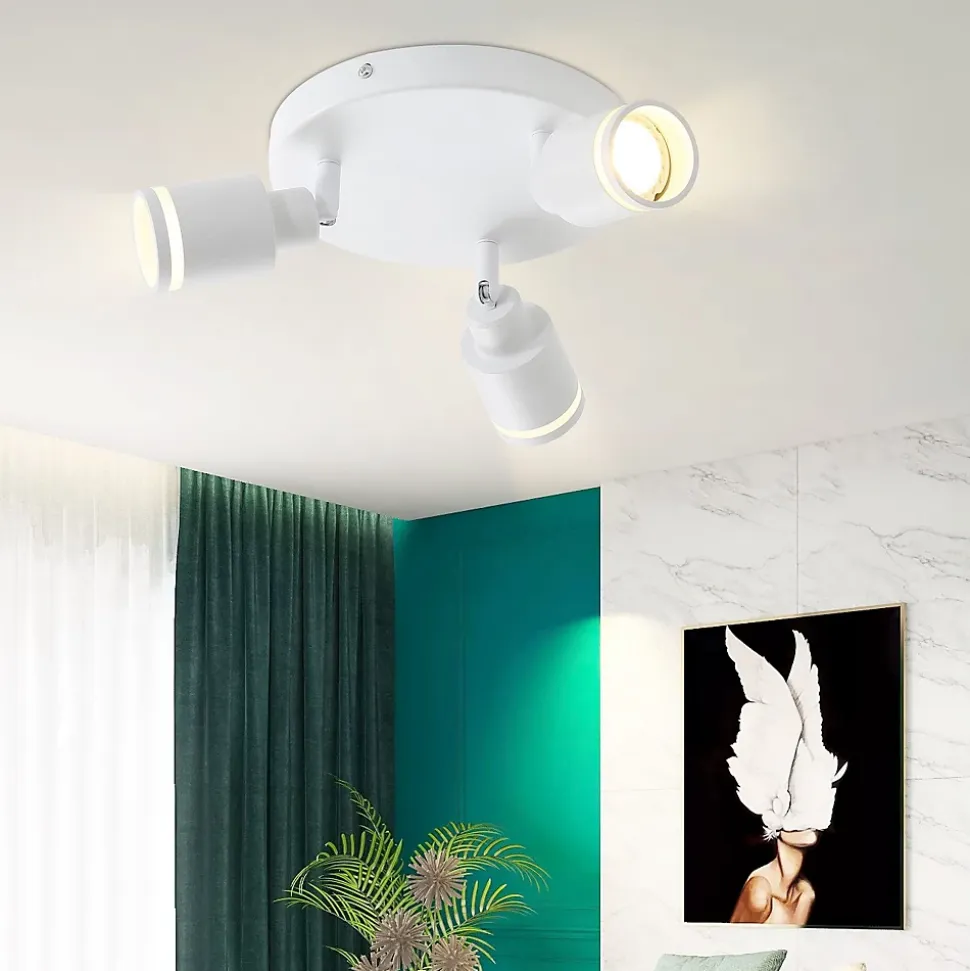 NETTLIFE Plafonnier Blanc moderne : 3 spots de plafond orientables en métal, plafonnier GU10, pour chambre, sans ampoule