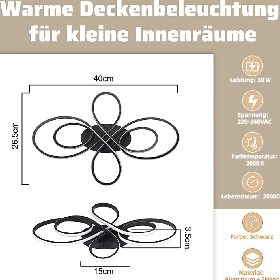 DESIGN : Ce plafonnier LED moderne pour salon présente une forme de papillon symétrique, ce qui en fait un point focal visuel reconnaissable dans n’importe quelle maison. Sa technologie de rendu des couleurs élevé (Ra>80) reproduit les couleurs fidèles et donne vie aux détails ; il est également sans scintillement, offrant un effet d’éclairage stable et doux. MATÉRIAU : Ce plafonnier est fabriqué en aluminium et silicone de haute qualité, garantissant une structure légère et robuste ainsi qu’une bonne dissipation de la chaleur. L’aluminium rend la lampe plus durable et facile à entretenir, tandis que la partie en silicone offre une bonne isolation et flexibilité, garantissant la sécurité et la longue durée de vie de la lampe. ÉCLAIRAGE PUISSANT ET EFFICACE : Ce plafonnier au design moderne est doté d’une seule source lumineuse de 30 watts, fournissant une lumière vive et uniforme pour éclairer efficacement n’importe quelle pièce. Avec une température de couleur de 3000 K, il émet une lumière blanche chaude qui crée une atmosphère chaleureuse et agréable. CARACTÉRISTIQUES DU PRODUIT : Dimensions : 40 x 26,5 x 3,5 cm, Puissance : 30 watts, température de couleur 3000 K, conception non dimmable. Équipé de LED fixes et non remplaçables, ce plafonnier bénéficie d’une technologie brevetée garantissant un design unique et d’excellentes performances. Utilisation : Ce plafonnier de 30 W, d’une température de couleur de 3 000 K, convient à de nombreuses occasions. Sa lumière chaude est idéale pour les salons, chambres, salles à manger et autres pièces, créant une atmosphère chaleureuse et conviviale. Il peut également être utilisé dans les bureaux, les magasins, les hôtels et autres espaces commerciaux pour créer des effets lumineux doux et lumineux.