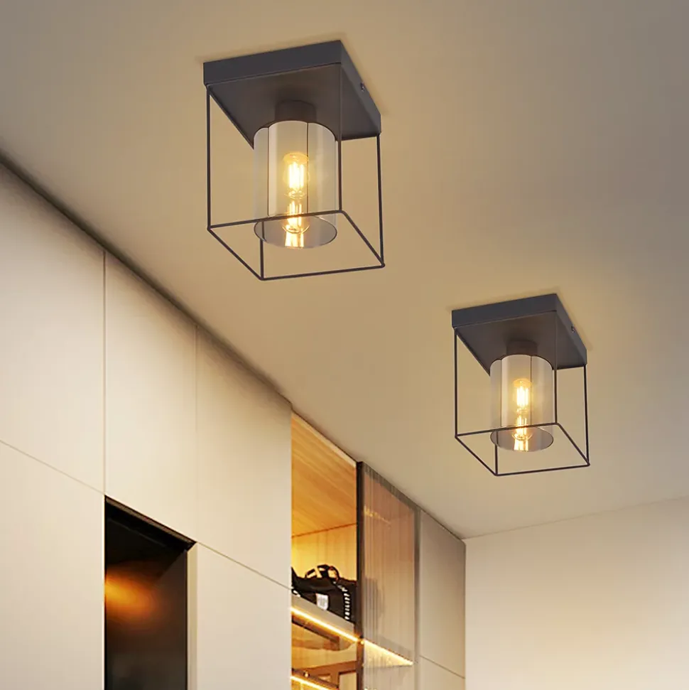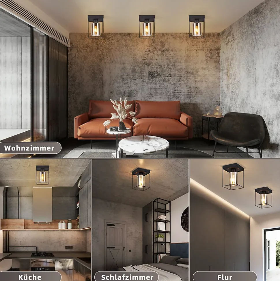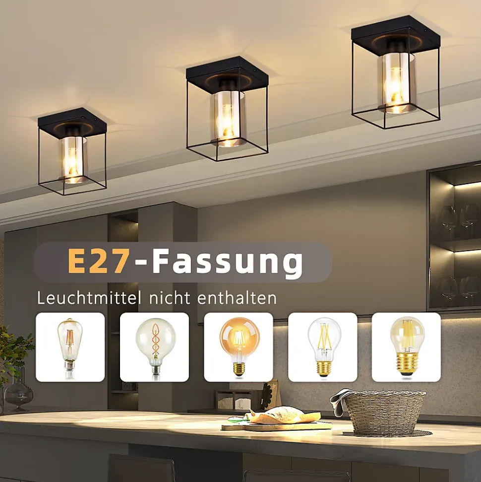 Plafonnier en verre : Le plafonnier est équipé d’un abat-jour en verre noir sable, qui assure une répartition uniforme de la lumière et évite l’éblouissement. Il dispose d’une douille E27 (sans ampoule, max. 40 W). Vous pouvez choisir une source de lumière avec différentes températures de couleur et luminosité pour obtenir un éclairage et une expérience visuelle optimauxHaute qualité : ce plafonnier de couloir est équipé d’un support de plafond en métal, qui est fixé et décoré par un cadre en métal. L’ensemble du produit adopte un design de laque noire, ce qui non seulement facilite le nettoyage et augmente la résistance à la corrosion, mais offre également une apparence à la mode. De plus, il assure la stabilité et prolonge la durée de vie du produitStyle rétro : ce plafonnier vintage est soigneusement conçu par les designers de . Leur style unique allie parfaitement esthétique et fonctionnalité. Les lignes épurées de la lampe donnent à la pièce une dimension visuelle supplémentaire. Le design noir s’accorde parfaitement avec un style intérieur design industriel rétro et s’harmonise avec le style général de l’intérieur.Installation facile : le plafonnier du salon est livré avec des instructions et tout le matériel d’installation. Le contenu est facile à comprendre et l’installation est rapide et facile. Il a des dimensions de 15 x 15 x 20,5 cm. L’abat-jour a un diamètre de 9 cm et une hauteur de 12 cm. Le plafonnier à flamme unique convient à une installation dans les couloirs, les petites chambres, les petites salles à manger et autres pièces à espace limitéService client : les produits peuvent être sujets à des chocs et des collisions pendant le transport. Parfois, des dommages tels que des bris de verre peuvent survenir. Si vous rencontrez des problèmes lors de la réception du produit, veuillez nous contacter. Notre équipe du service client est toujours disponible pour vous aider