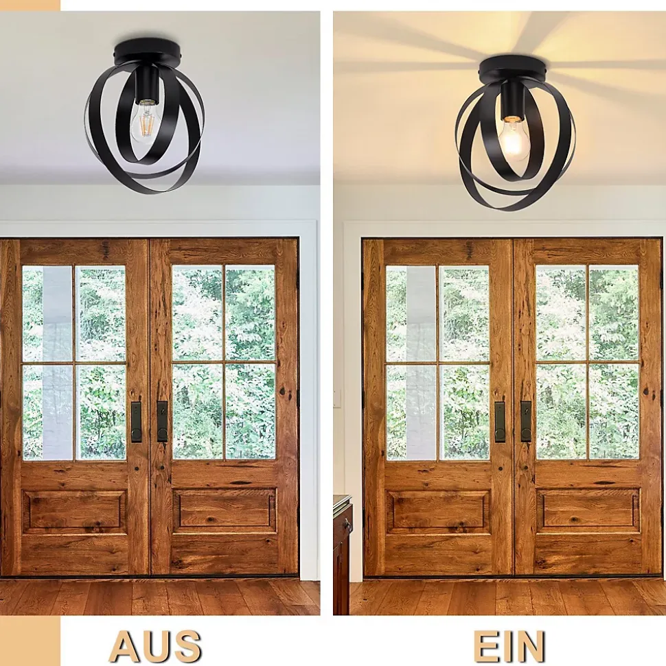【Design rétro】 Ce plafonnier de couloir E27 est fabriqué en métal de haute qualité et utilise généralement un éclairage jaune chaud ou clair pour créer un effet d’éclairage doux. Ce type de plafonnier convient à tous les styles, qu’il soit rétro, moderne ou industriel.【Abat-jour pivotant】 Le plafonnier rétro vintage a un abat-jour en métal noir d’un diamètre de 24 centimètres. Cet abat-jour peut pivoter à 360° et vous pouvez l’ajuster librement à votre angle préféré. Après avoir allumé les lumières, la lumière réfléchie sur le plafond sous différents angles est également différente, ce qui est un plaisir visuel.【Douille E27 standard】 Le plafonnier noir est une douille E27 standard et peut être installé avec diverses lampes E27. Vous pouvez choisir la lampe la plus adaptée à vos besoins.【Haute qualité】 Taille du plafonnier rétro : 24 × 12 × 26,5 cm, source de lumière : E27 (non incluse), tension : 230 V, matériau : métal, puissance maximale : 40 W. Les lampes de salon en métal sont fabriquées en fer de haute qualité, durables, résistantes à la corrosion et à la rouille.Large utilisation et installation facile : le plafonnier en métal noir est facile à remplacer, avec un design rétro multifonctionnel. Le plafonnier peut être utilisé dans les couloirs, les chambres, les salons, les salles à manger, les cuisines, les balcons, les salles de bains, etc. Ce plafonnier se marie également très bien pour Noël.