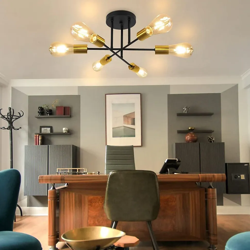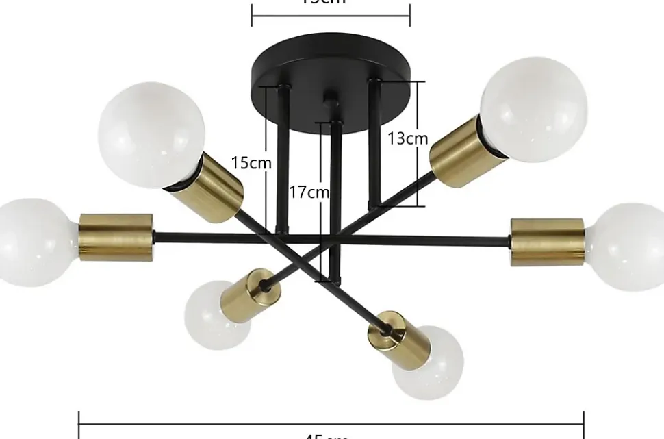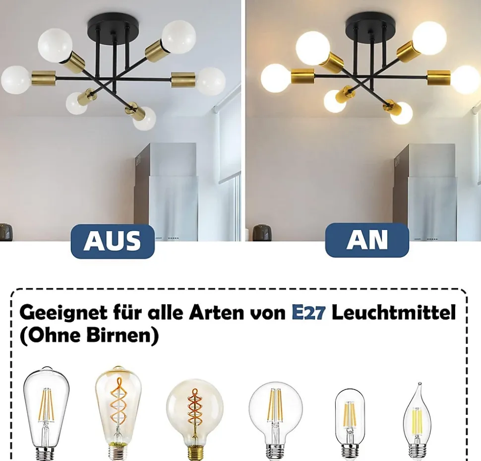Matériau : style de lampe décorative en fer laqué antirouille et anti-décoloration. Le culot de lampe E27 convient aux ampoules E27 normales (ampoules non incluses) Puissance : 25 W, longueur : 60 cm, largeur : 24 cm, hauteur : 30 cm, tension : 230 VStyle : plafonniers à 6 ampoules, combinaison avec une ampoule Edison vintage et moderne, rétro et des plafonniers industriels combinés les uns avec les autres. Un excellent éclairage et une bonne décoration dans n’importe quelle pièce rendent le plafond plus accrocheur (non rotatif).Décoration idéale : le plafonnier de salon est parfait pour les salons, chambres, cuisines, couloirs, bars, cafés, salles à manger, bureaux, restaurants, etc.INSTALLATION FACILE Installation facile avec la pièce requise. Nous avons des instructions d’installation détaillées. Veuillez suivre les instructions d’installation. Ce produit est un produit accessoire, une ampoule de classe d’efficacité énergétique E. Convient pour le stockage à température ambiante et peut être démonté pour vérifier séparément la source lumineuse attachée.Service après-vente : Nous offrons une garantie d’achat de 2 ans pour l’éclairage, notre service client est aussi unique que le design contemporain de nos lampes – une qualité qui convainc, si vous avez des questions, n’hésitez pas à nous contacter