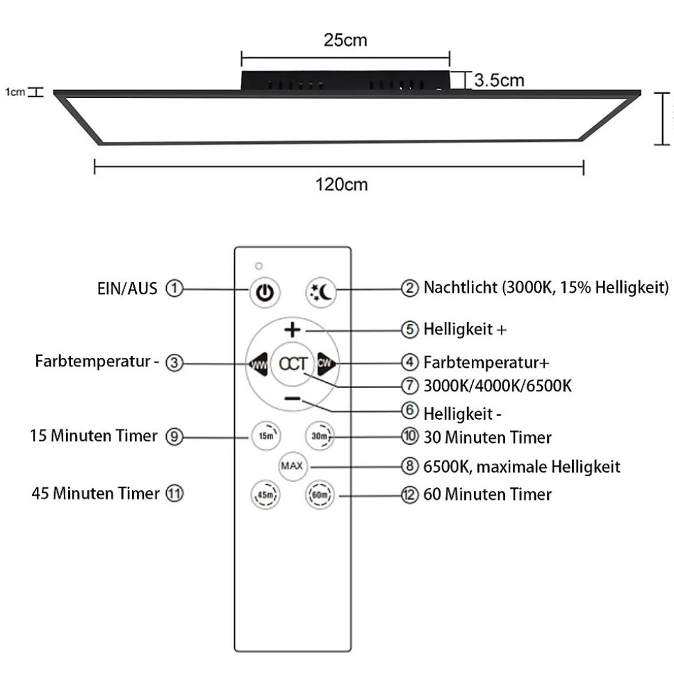 Matériel : Ce plafonnier LED rectangulaire est équipé d’un cadre en aluminium blanc et d’un socle en fer, offrant une diffusion lumineuse large et agréable dans la pièce. Avec son design moderne, la lampe donne l’impression qu’elle flotte au plafondIntensité variable et contrôle de la température de couleur : le panneau LED prend en charge la gradation, la température de couleur peut être ajustée entre 3 000 K et 6 500 K. La luminosité peut être réglée de 5% à 100%. Grâce à la fonction mémoire, le dernier mode de commutation est automatiquement enregistré. En même temps, la température de couleur peut être rapidement modifiée à l’aide de l’interrupteur mural.Économie d’énergie : ce plafonnier plat à LED est plus efficace que les ampoules à incandescence traditionnelles et équivaut à une ampoule à incandescence de 200 watts, réduisant ainsi la consommation d’énergie tout en fournissant une lumière plus brillante. Leur durée de vie peut atteindre 20 000 heures, ce qui réduit la fréquence de remplacement des lampesLarge application : sa conception ultra fine et sa grande zone d’éclairage rendent ce plafonnier idéal pour les bureaux, ainsi que pour les salons, les cuisines, les chambres, les centres commerciaux, les restaurants, les salles de conférence, les couloirs, les escaliers, les balcons et les garages.Conseils d’installation : en raison de la grande taille du produit, l’installation peut être un peu difficile. Lors de l’installation, veillez à ne pas saisir les côtés courts pour éviter la déformation des côtés longs. Si vous avez des questions ou des problèmes lors de l’installation, n’hésitez pas à nous contacter à tout moment