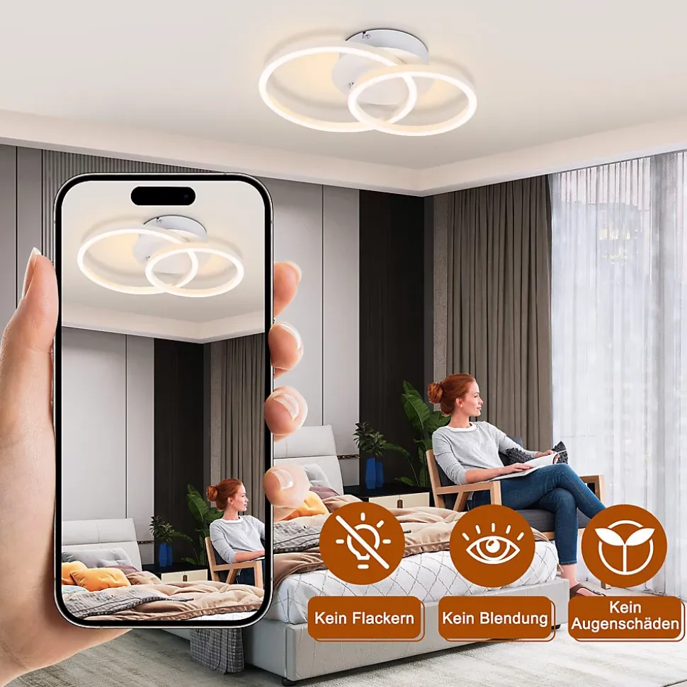 Design moderne : le design noir élégant et le corps rond élancé font de ce plafonnier un ajout élégant à tout intérieur contemporain. La lumière douce et le corps rond créent une atmosphère élégante et confortable dans votre chambre à coucher.Paramètres du produit – Taille : 34,3*25*7,4 CM ; Puissance : 24 W ; Couleur : noir/blanc ; Tension : 220-240VAC ; Matériau : fer+aluminium+plastique ; Température de couleur : 3000 K, lumière blanche chaude ; Zone d’éclairage : 8-15M².Matériau métallique : Le plafonnier est composé de fer, d’aluminium et de plastique. Il dispose d’une forte dissipation de chaleur, d’une température de fonctionnement stable de la source lumineuse, il est robuste et durable et est résistant à la corrosion et à la rouille.Large champ d’application : le plafonnier à LED est fourni avec tous les accessoires d’installation, aucune procédure compliquée n’est nécessaire, il est très bien adapté à l’éclairage intérieur, recommandé pour l’installation dans le salon, la chambre à coucher, la salle à manger, la cuisine, le couloir, etc.