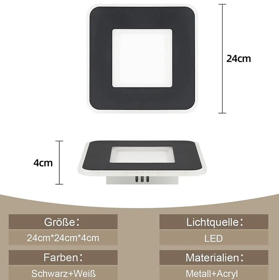 【Design moderne】 Le plafonnier LED au design classique en noir et blanc s’intègre avec style dans les intérieurs contemporains. Grâce au plafonnier LED intégré de haute qualité, il crée un éclairage blanc chaud uniforme et agréable sans scintillement. Vos yeux seront protégés d’une lumière forte et éblouissante.【Blanc chaud 3000K】 Le plafonnier de couloir de 23 W peut émettre une lumière agréable et brillante et aider à réduire la fatigue. Le plafond LED de la lampe de chambre n’a pas de scintillement, CRI >80 (il nous permet de voir la vraie couleur originale de l’objet), mais n’est pas dimmable.【Détails techniques】Dimension : 24*24*4 cm ; Tension : 230 V, puissance : 23 W ; Intensité variable : non ; Classe de protection : IP20 ; Matériau : acrylique et métal ; Les lampes LED sont installées de manière permanente et une bonne efficacité énergétique peut être garantie grâce à la technologie LED. La durée de vie est de 25 000 heures.【Utilisations polyvalentes】 Ce plafonnier moderne convient non seulement au couloir, à la cuisine, à la salle à manger et au salon, mais également aux pièces de loisirs telles que les chambres à coucher, les chambres d’enfants ou les salles d’étude. Cela signifie que chaque pièce est complétée et embellie par un élément d’éclairage spécial.【Service client】 Nous offrons une garantie de 2 ans pour l’éclairage.