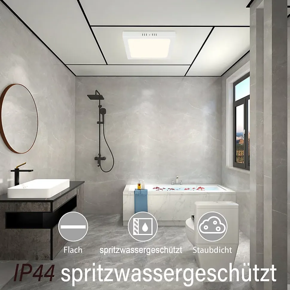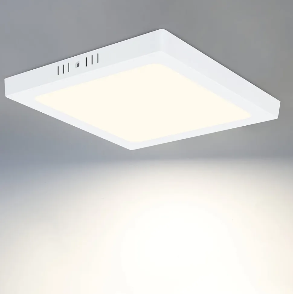【Super lumineux et économe en énergie】Le plafonnier carré plat de 18 W remplace les ampoules classiques de 150 W. Il est très lumineux, éclaire la plupart des zones de la pièce et permet d’économiser plus de 88 % sur les coûts d’électricité. Les LED intégrées offrent une longue durée de vie (jusqu’à 25 000 heures) pour une utilisation pratique.【Design moderne et lumière blanche neutre】La lampe LED blanche est plate et fine, avec un design élégant et moderne qui s’adapte à tous les styles d’intérieur. Elle offre une lumière blanche neutre de 4000 K, idéale pour les bureaux, salles de bain et autres espaces de travail.【Protection des yeux et sans scintillement】Le plafonnier LED blanc diffuse une lumière uniforme et douce, sans éblouissement ni scintillement. L’indice de rendu des couleurs CRI80+ rend la lumière vive et naturelle, proche de la couleur réelle des objets, protégeant ainsi vos yeux de la lumière vive.【Installation facile et large application】Le plafonnier LED est facile à installer avec les accessoires fournis. Son design simple et plat convient à de nombreux styles d’intérieur. Il est parfait pour le salon, la chambre, la chambre d’enfant, la salle à manger, le bureau, la cuisine, le couloir, le balcon, la cave, l’escalier, l’entrepôt et les hôtels.【Étanche et facile à nettoyer】L’abat-jour est certifié IP44, protégeant la lampe contre la poussière et les insectes. Il reste comme neuf même après une longue utilisation, sans jaunir. Le nettoyage est simple : il suffit de l’essuyer avec un chiffon.
