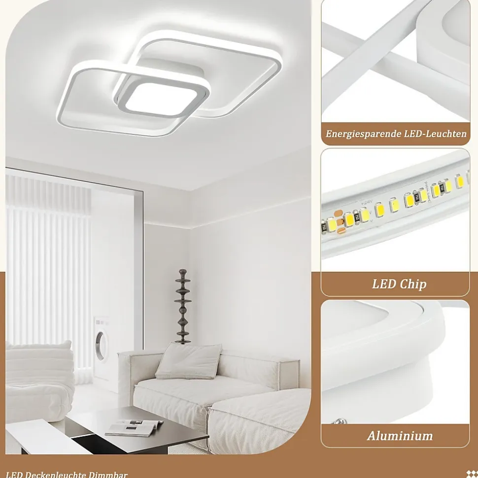 【Design moderne et minimaliste】 Le plafonnier avec télécommande est composé de formes géométriques simples, exquises et claires, qui brisent la forme traditionnelle du plafonnier et rendent cette apparence simple et unique ; Dans le même temps, la source de lumière LED utilisée produit également un effet lumineux uniforme et doux.Protection des yeux et sans scintillement : ce plafonnier en métal avec CRI > 80 peut restaurer la couleur la plus authentique de l’article ; L’éclairage LED avancé n’est pas affecté par les interférences radio et émet une lumière vive et douce pour protéger vos yeux.【Dimmable】 Ce plafonnier LED au design moderne est dimmable et équipé d’une télécommande. Il vous permet de basculer entre une lumière blanc chaud, blanc neutre et blanc froid. Avec la télécommande, vous pouvez facilement régler la luminosité de 10 % à 100 % et la température de couleur de 3 000 K à 6 000 K.【Fonctions de veille et de minuterie】 Le plafonnier de la chambre a des fonctions de veille et de minuterie. Lorsque vous vous endormez la nuit, la lumière peut progressivement diminuer et devenir douce. Dans le même temps, les utilisateurs peuvent régler le plafonnier pour qu’il s’éteigne automatiquement après un certain temps pour éviter de perturber la qualité du sommeil en raison d’un éclairage prolongé.【Scènes polyvalentes】 Ce plafonnier moderne convient à de nombreuses scènes, idéal pour l’éclairage du salon, de la cuisine, de la chambre, de la salle à manger, du couloir et du balcon, rendant toute la pièce plus lumineuse et plus confortable.