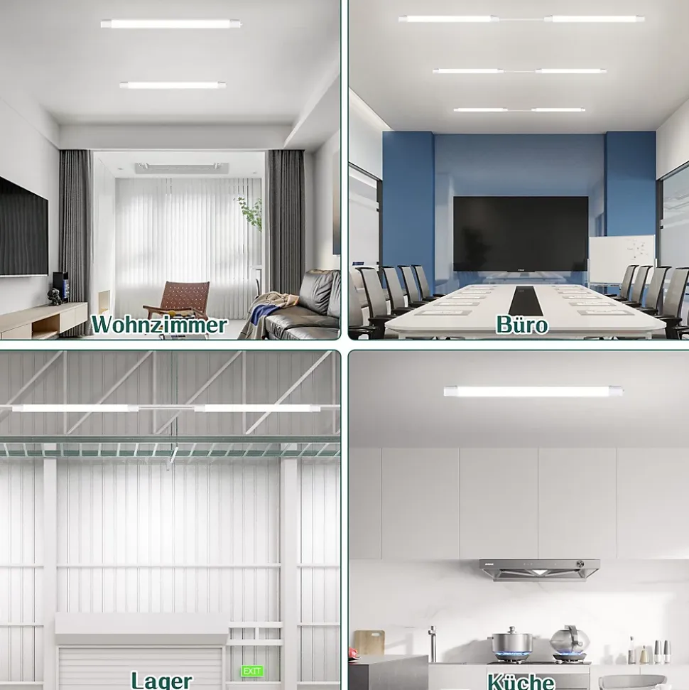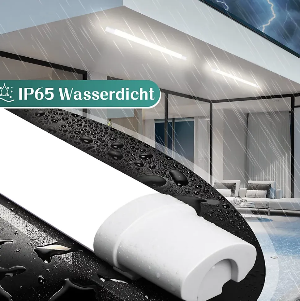 Étanche IP65 : cette lampe LED étanche offre une excellente protection contre la poussière, l’eau et les chocs et est idéale pour une utilisation dans des environnements humides. La conception de protection IP65 garantit que le plafonnier LED fonctionne de manière stable dans des environnements très humides. Que ce soit dans la salle de bain, la buanderie ou à l’extérieur, il résiste efficacement à la pénétration de la vapeur d’eau, prolongeant ainsi la durée de vie du tube LED.Efficacité énergétique et durabilité : le tube LED anti-humidité de 90 cm utilise la dernière technologie et atteint une efficacité lumineuse élevée allant jusqu’à 120 LM/W. Il ne nécessite que 25 W de puissance pour produire une puissance lumineuse puissante de 3 000 lumens. Le tube LED peut remplacer les lampes à incandescence conventionnelles de 300 W et permet d’économiser plus de 90 % des coûts d’électricité. De plus, il a une longue durée de vie allant jusqu’à 20 000 heures et est extrêmement durable.Rendu des couleurs réaliste et agréable pour les yeux : avec un indice de rendu des couleurs élevé de CRI 80+, cette lumière LED résistante à l’humidité peut parfaitement reproduire les couleurs et créer une expérience visuelle agréable. De plus, la lumière LED présente une transmission lumineuse élevée, une bonne stabilité et une sortie lumineuse sans scintillement. La lumière est répartie uniformément et doucement dans toute la pièce, protégeant efficacement vos yeux que vous lisiez, travailliez ou vous détendiez – pour un éclairage agréable.Matériaux de haute qualité : le plafonnier LED d’intérieur est composé d’un matériau PC de haute qualité et de puces LED avancées. Il est résistant à la corrosion, aux chocs, aux couleurs résistantes, possède une ténacité élevée et de fortes propriétés d’étanchéité. La transmission de la lumière est élevée, tandis que la lumière blanche neutre de 5000K est uniforme et douce.