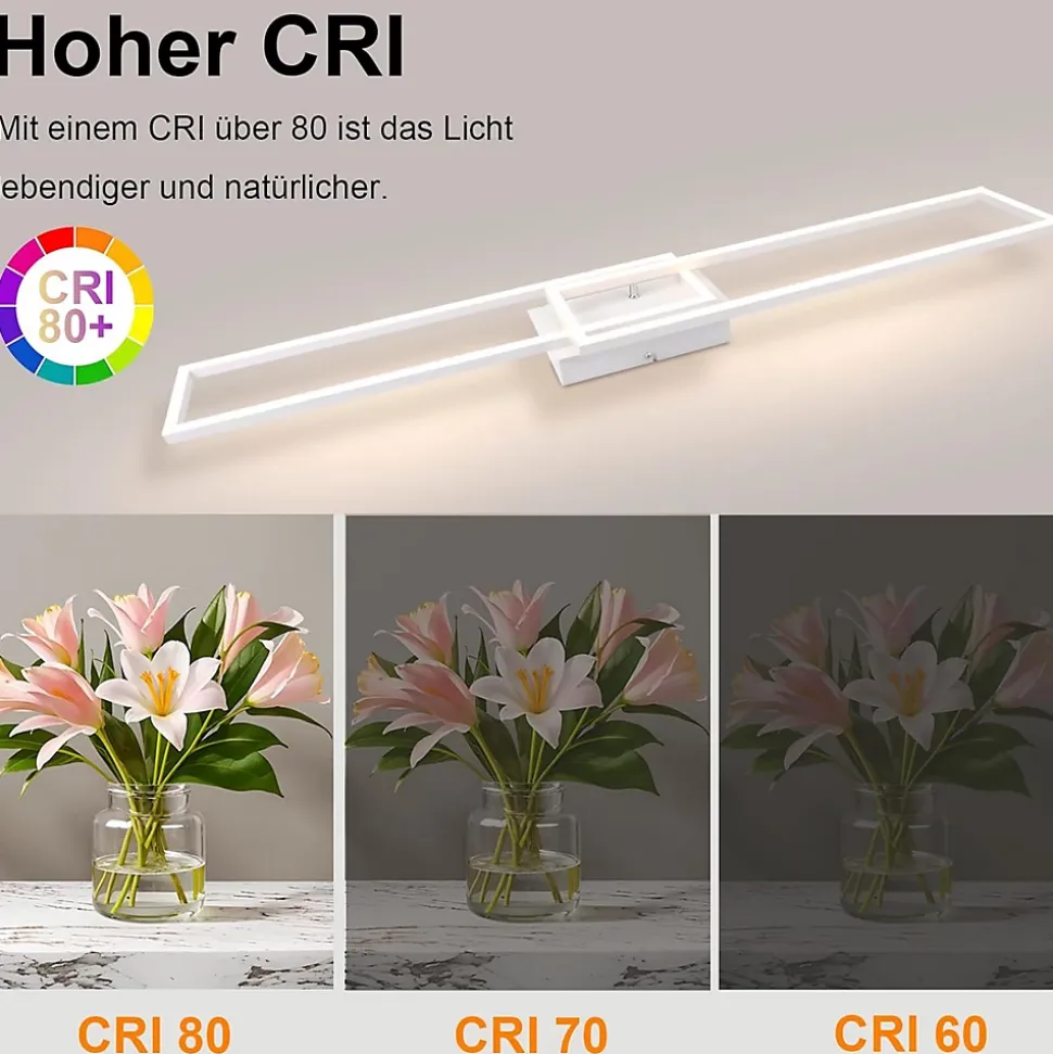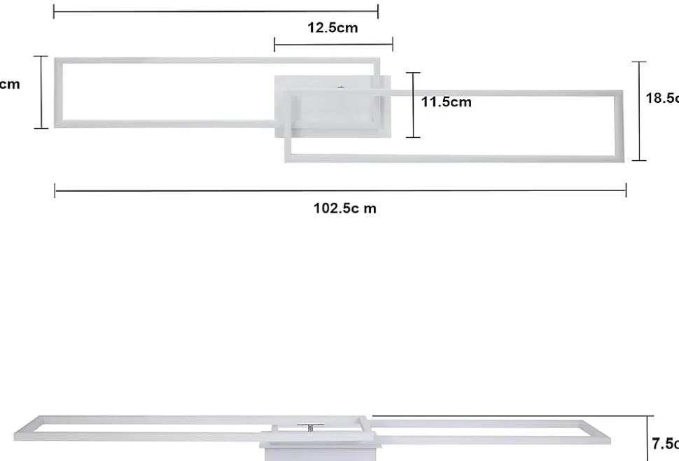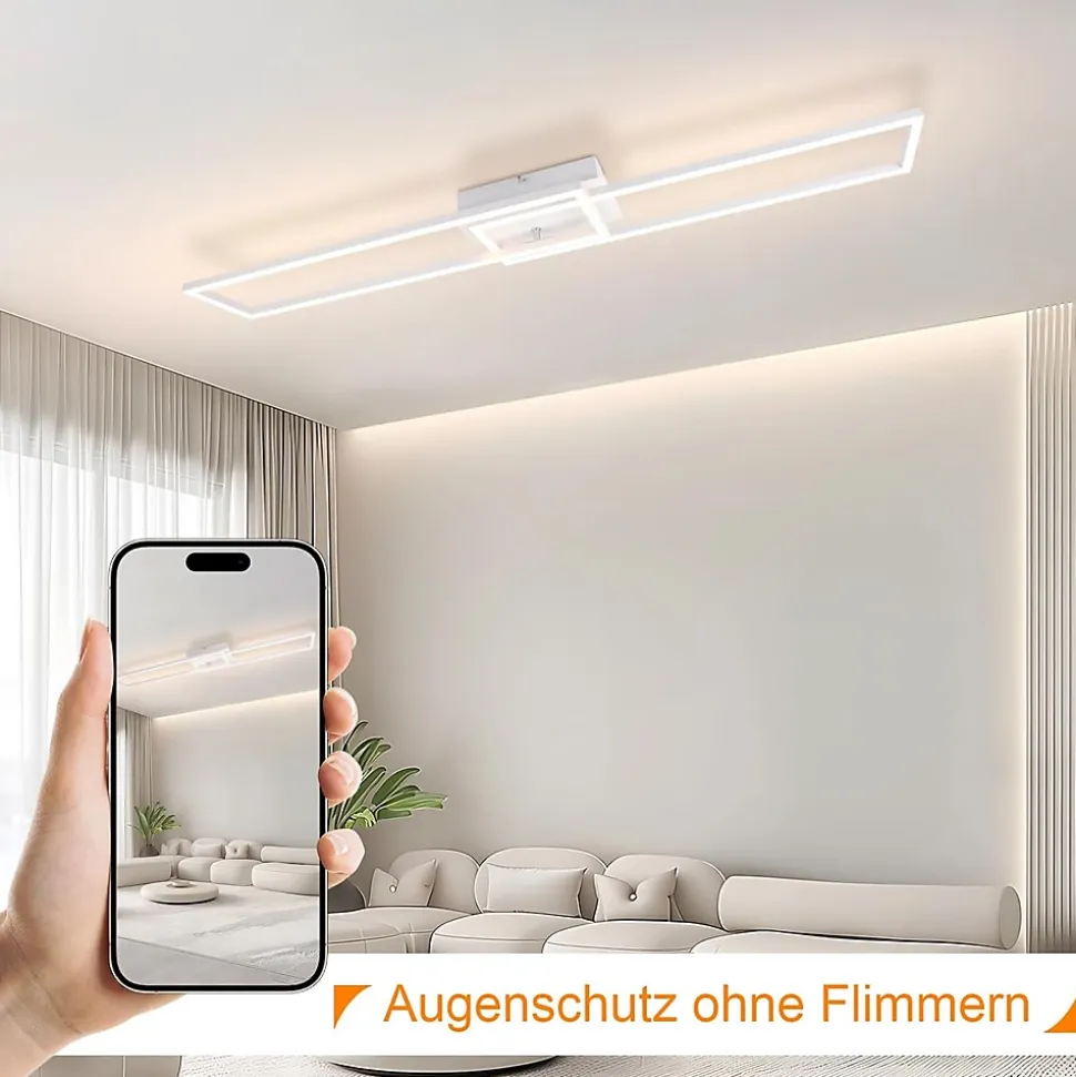 Design moderneCe plafonnier LED rectangulaire double dispose d’un cadre extérieur pivotant et d’une barre lumineuse pour une couverture lumineuse optimale et un design moderne.Réglage multifonctionnelLa luminosité est réglable de 10% à 100% via l’interrupteur mural. La température de couleur est fixée à 3000 K. Le plafonnier dispose d’une fonction mémoire pour restaurer le dernier réglage (télécommande non incluse).Matériaux sélectionnésFabriqué à partir de matériaux métalliques durables et élégants, ce plafonnier offre une bonne dissipation thermique. Les puces LED garantissent une transparence élevée, un rendu des couleurs précis, sans éblouissement ni scintillement pour protéger votre vue.Dimensions et spécificationsTaille : 102,5 x 18,5 x 7,3 cmPuissance : 32 WTension : 220-240 VIndice de rendu des couleurs : 80+Installation facileLe produit est livré avec toutes les pièces et instructions nécessaires pour une installation simple dans divers scénarios (salon, chambre, cuisine, salle à manger, bureau, etc.).Mode d’emploi de l’interrupteur muralAllumer la lumière.Réglage de la luminosité : après 10 secondes, choisir une luminosité préférée.Éteindre pendant 1 seconde puis rallumer pour fixer la luminosité.Changer la température de couleur : allumer pendant 1 seconde, éteindre puis répéter le processus pour choisir une nouvelle luminosité.Fixer la température de couleur : après avoir choisi une luminosité préférée, éteindre pendant 1 seconde puis rallumer.