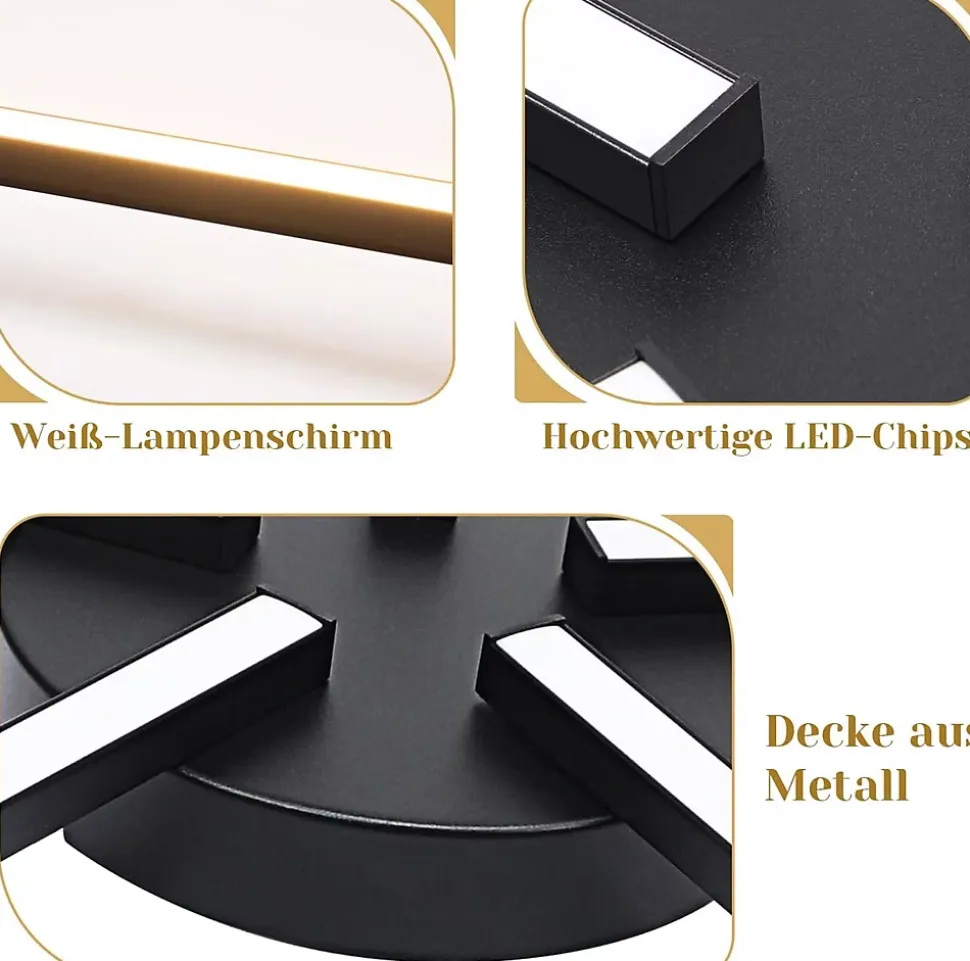 Plafonnier LED moderne : Le plafonnier de salon a un design simple, une forme unique, pleine de modernité et de sens artistique. Il apporte non seulement une lumière agréable, mais donne également à la pièce un effet visuel parfaitÉconomie d’énergie et protection des yeux : l’utilisation de sources lumineuses à puce LED au lieu de lampes à incandescence peut économiser 85 % d’énergie. L’indice CRI des plafonniers LED modernes va jusqu’à 80+, ce qui restaure les couleurs réalistes des objets, protège les yeux des dommages causés par la lumière et crée un environnement d’éclairage confortable et lumineux pour vous.Matériau de haute qualité : le plafonnier LED noir est fabriqué en métal de haute qualité, la surface a été traitée avec de la peinture en aérosol à haute température et n’est pas facile à rouiller. Ce plafonnier a une transmission lumineuse élevée et, en combinaison avec des puces LED à économie d’énergie de haute qualité, assure une lumière uniforme et stable.Large application : ce plafonnier LED en métal noir peut être utilisé dans la plupart des décorations intérieures. Convient aux couloirs, salons, salles à manger, chambres, cuisines, bureaux et autres scènes. Conception de forme unique et créative, simple et à la mode, créant une atmosphère lumineuse et confortableInstallation rapide et facile : ce plafonnier de chambre est très facile à installer. Il vous suffit de l’installer à l’endroit que vous avez réservé, de lire les étapes de fonctionnement dans le manuel d’instructions, de connecter le cordon d’alimentation et vous pourrez terminer l’installation rapidement et facilement. Créez en douceur plus de designs dans votre maison.