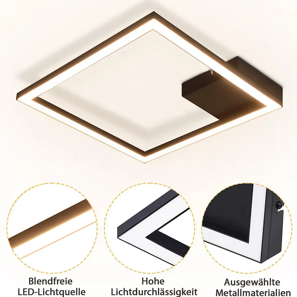 Design moderne : ce plafonnier LED au design moderne présente un cadre rectangulaire qui correspond parfaitement au style de mobilier moderne et fournit un éclairage pratique pour votre vie quotidienne.Fonction d’applique murale : ce plafonnier LED est conçu de manière unique et peut être utilisé comme applique murale. Il s’adapte avec flexibilité aux différentes méthodes d’installation et donne au mur une touche moderne tout en offrant des effets de lumière agréables.Température de couleur : température de couleur chaude de 3 000 K, lumière douce, proche de la lumière naturelle, soulage la fatigue oculaire, adaptée à une utilisation à long terme, créant une atmosphère de vie confortableChamp d’application : convient aux décorations intérieures telles que les salons, les chambres, les restaurants, les salles d’étude, les couloirs, etc. L’apparence moderne et l’éclairage agréable en font un choix de décoration idéal.Informations sur le produit : la taille est de 29,4 x 29,4 x 3,8 cm, la puissance est de 12 W, le matériau est en métal et en plastique, ce qui garantit durabilité et beauté et convient à divers intérieurs.