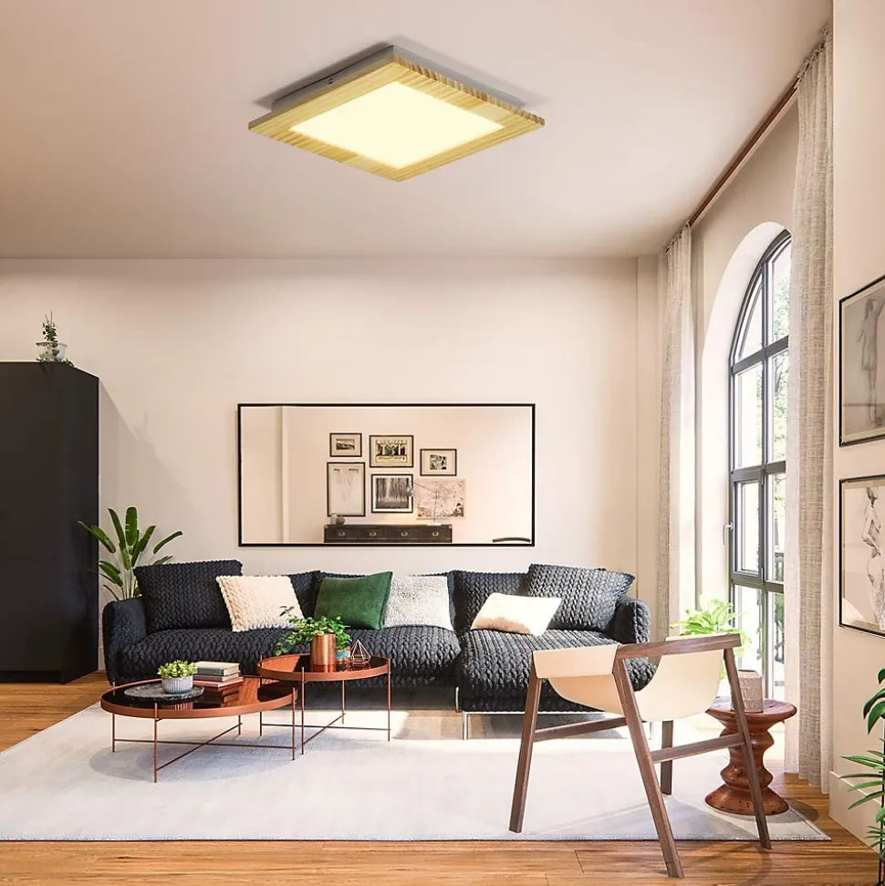 Design : ce plafonnier est alimenté par des LED lumineuses et présente un design simple mais attrayant et carré avec des éléments en bois. La décoration en bois crée une ambiance naturelle et se combine bien avec d’autres matériaux de ce typeDimensions : 30 x 30 x 4,2 cm, tension : 230 V, puissance : 17 W, 1360 lumens. La lampe à économie d’énergie émet une lumière agréable et brillante dans l’environnementAmpoule LED : le plafonnier moderne avec puce LED de haute qualité, lumière plus uniforme et durable, lumière plus étendue, perles de lampe blanc chaud (3000 K), lumière plus douce pour protéger la vision. Les ampoules LED sont installées en permanence, grâce à la technologie LED, une bonne efficacité énergétique peut être garantieChamp d’application : la lumière générée par le plafonnier est accueillante et agréable, et la lampe peut non seulement être montée dans le couloir ou la chambre, mais aussi dans le salon.Service après-vente : Nous offrons une garantie vendeur de 2 ans pour l’éclairage, notre service client est aussi unique que le design contemporain de nos lampes – une qualité qui convainc, si vous avez des questions, n’hésitez pas à nous contacter