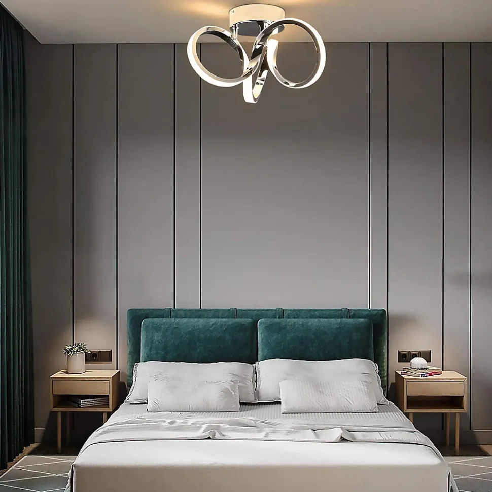 Design moderne : le plafonnier LED avec forme de vague incurvée intégrée présente un aspect aluminium brossé de haute qualité. Les bâtons lumineux LED installés en permanence et fermement verrouillés ont un aspect chromé.Matériau : les tiges lumineuses incurvées de haute qualité et la plaque de plafond sont en aluminium. La lampe a une finition chromée cool avec un aspect satinéNon dimmable : le plafonnier moderne avec puce LED de haute qualité, lumière plus uniforme et durable, lumière plus étendue, perles de lampe blanc chaud (3000 K), lumière plus douce pour protéger la vue. Faible consommation d’énergieDétails techniques : Dimensions de la lampe : environ 31*26*20 cm. Dimension de la plaque de plafond : Ø12,5*4cm. Consommation électrique : 19W. Type d’ampoule : LED. Lampes installées en permanence : Oui. Alimentation et type de prise : électrique filaire. Tension : 230 VDomaine d’application : ce plafonnier fournit une lumière blanche et chaude, de couleur chrome, parfaite pour une pièce moderne, un salon, une chambre, une salle à manger, une cuisine, un bureau, un bureau, un hôtel, un restaurant, etc. Garantie : 2 ansSi vous recevez le produit et rencontrez des problèmes, veuillez contacter notre service client.