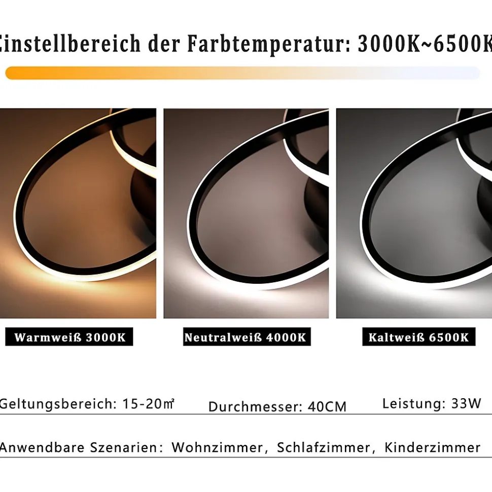 Conception géométrique de 40 cm : ce plafonnier amélioré est conçu dans une grande taille de 40 cm et son excellente plage d’éclairage le rend plus adapté à de nombreux intérieurs modernes. Le design noir romantique s’adapte avec beaucoup de style à de nombreux meubles contemporains. Leur simple verrière ronde constitue la base de « 3 feuilles entrelacées ». Cela permet une meilleure transmission de la lumière et une meilleure dissipation de la chaleur pour les plafonniers.Intensité variable : la lumière à intensité variable en continu peut être ajustée à n’importe quelle température de couleur agréable (3000K-6500K) et luminosité (0-100%) avec la télécommande pour profiter de votre vie en petite quantitéSans scintillement et sans éblouissement : avec des LED intégrées de haute qualité, il émet une lumière blanche chaude uniforme et agréable, sans scintillement, protège vos yeux des lumières dures et éblouissantes. Créez maintenant une maison plus claire et plus lumineuse pour vous et votre famille, dites adieu aux environnements sombres.Facile à installer : le plafonnier LED est facile à installer sans démonter l’abat-jour. Tout est inclus : vis, vis d’expansion, support métallique, câble de connexion. Il est recommandé de faire l’installation par un électricien agrééSûr et fiable : le produit a été récemment révisé et modernisé, et il existe des cas où les valeurs d’efficacité énergétique ne correspondent pas à la page détaillée. Si vous recevez le produit et rencontrez des problèmes, veuillez contacter notre service client