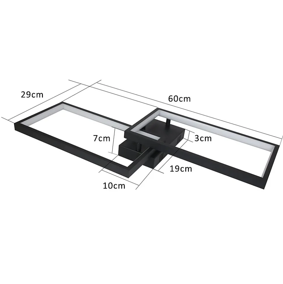 【Design moderne】Le plafonnier LED se distingue par son design moderne et élégant, composé de deux cadres rectangulaires fixés au plafond. Les LED intégrées fournissent une lumière optimale. Son design attrayant et ses couleurs subtiles s’intègrent facilement dans les intérieurs contemporains.Dimensions : 60 × 29 × 7 cm ; Plaque de plafond : 19 × 10 × 3 cm ; Tension : 230 V. 【Protection des yeux et sans scintillement】L’éclairage LED avancé est exempt d’interférences radiofréquences (RF) et émet une lumière vive et douce, protégeant ainsi vos yeux. L’abat-jour traité atténue la lumière. L’indice de rendu des couleurs (>80) garantit un rendu clair et naturel des couleurs. 【Fonction mémoire】Le plafonnier LED dispose d’une fonction mémoire intelligente. Allumez la lampe avec l’interrupteur mural, attendez 8 secondes, puis éteignez-la et rallumez-la. La lumière reprendra automatiquement la couleur précédemment réglée. Si vous éteignez et rallumez rapidement, elle commencera avec une nouvelle couleur. 【Gradation en continu】Le plafonnier LED offre deux modes de commande : télécommande et interrupteur mural (non inclus). Vous pouvez régler la lumière de froide à chaude et la luminosité de 5% à 100%. La température de couleur est ajustable de 3000 K à 6500 K pour s’adapter à vos besoins et à l’ambiance souhaitée. 【Large gamme d’applications】Idéal pour éclairer les salons, cuisines, chambres, magasins, salles à manger, salles de conférence, couloirs, cages d’escalier, porches et garages. En cas de problème, contactez notre service client.