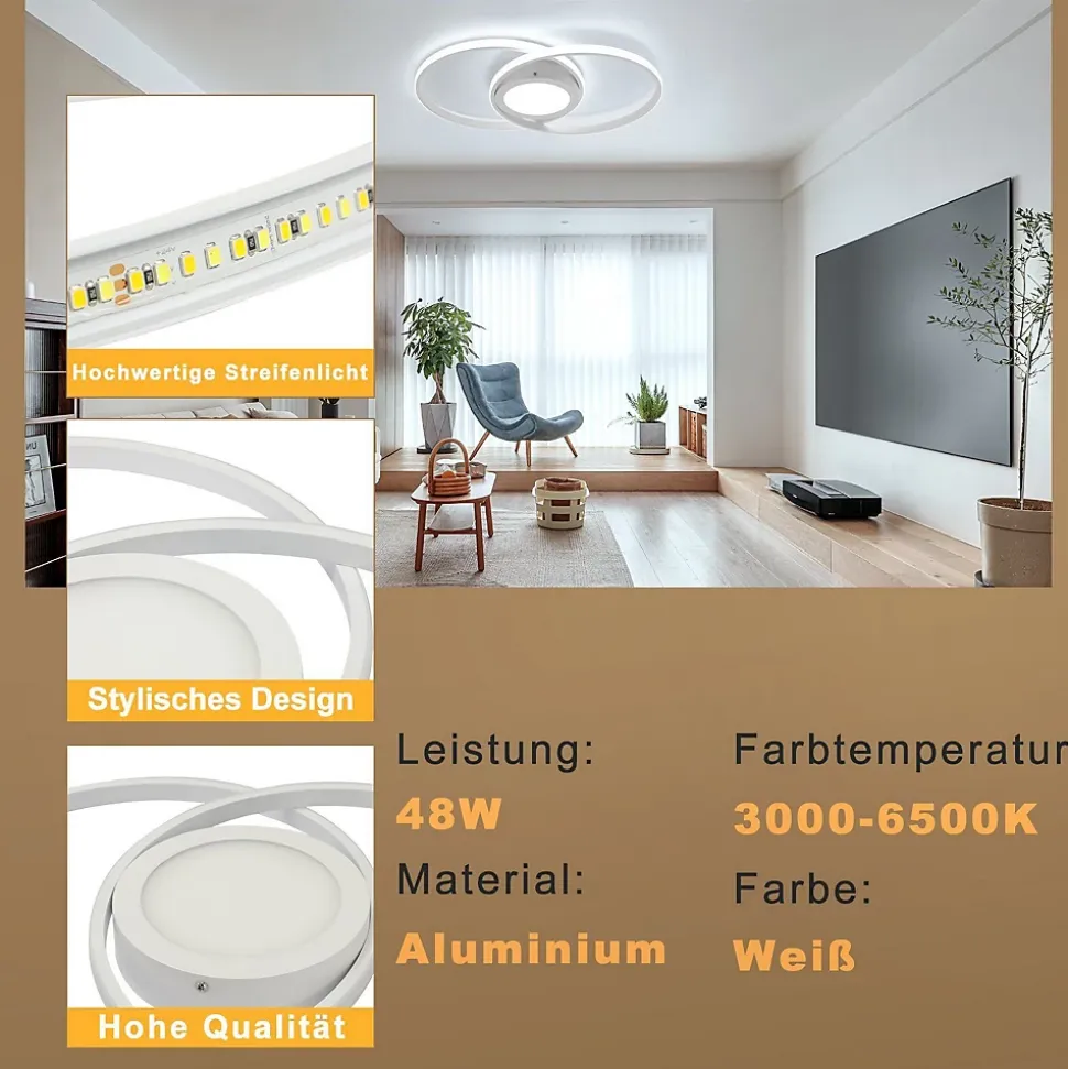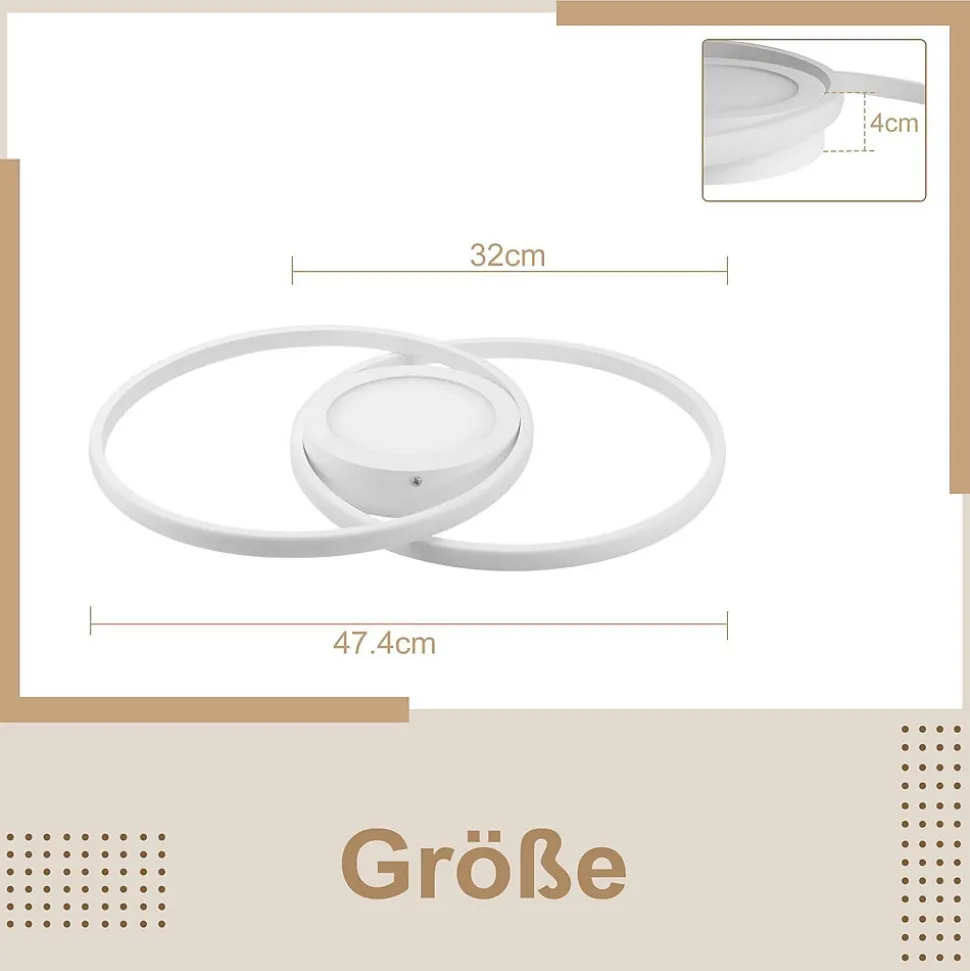 【Design moderne】 : ce plafonnier moderne dispose de deux anneaux en aluminium blanc, peut étendre la zone d’éclairage et fournir suffisamment de lumière. Ce plafonnier vous offre un confort ultime et ajoute une touche élégante. Convient pour le salon, la chambre, le couloir, le balcon, la cuisine, etc.【Fonction de gradation】 : ce plafonnier LED dispose également d’une fonction de gradation. Avec la télécommande, vous pouvez facilement régler la température de couleur et la luminosité, d’une lumière chaude et confortable (3000K) à une lumière froide claire et claire (6500K). La luminosité peut être ajustée de 10 % à 100 % pour répondre à vos besoins dans différentes situations.【Matériau de haute qualité】 : ce plafonnier est fabriqué en aluminium épaissi de haute qualité, solide et résistant à l’usure. La source de lumière LED a une efficacité d’éclairage élevée, une faible consommation d’énergie, une source de lumière stable et sans éblouissement, protège efficacement vos yeux.【Informations sur le produit】 : Dimensions : 47,4 x 33,2 x 4 cm ; Puissance : 48 watts. Matériau : aluminium. Nos plafonniers LED sont non seulement élégants et pratiques, mais également soigneusement sélectionnés en termes de matériaux et de performances.【Garantie de deux ans】 : si vous constatez des défauts de fabrication ou des problèmes de performances avec le produit pendant l’utilisation, nous vous aiderons activement à les résoudre. Vous pouvez nous contacter à tout moment, même si cela date de plus de deux ans.