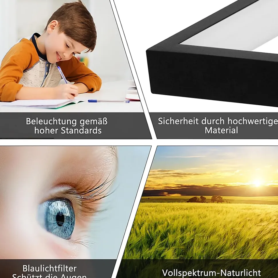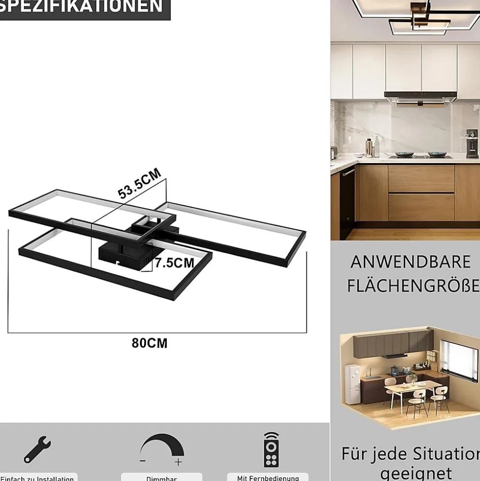 Design moderne et fonction veilleuse : le plafonnier LED présente un style design élégant et moderne avec des lignes épurées et une apparence élégante qui améliore l’apparence esthétique générale de l’intérieur. De plus, il dispose d’une fonction veilleuse qui fournit un éclairage d’ambiance doux pour les activités nocturnes et la recherche d’objets.Intensité variable : ce plafonnier LED peut ajuster la luminosité selon les besoins, offrant une variété d’options d’éclairage. Cela vous permet d’ajuster l’éclairage en fonction de l’environnement ou de l’activitéIndice de rendu des couleurs ≥80 : Ce plafonnier LED a un indice de rendu des couleurs de 80 ou plus, ce qui signifie qu’il est capable de reproduire avec précision les couleurs des objets. Ainsi, vous pouvez profiter d’un effet d’éclairage plus réaliste et naturelSans scintillement : le plafonnier LED utilise une technologie sans scintillement pour éviter un scintillement fréquent. Cela réduit la fatigue oculaire et garantit une expérience visuelle confortable pour protéger la santé oculaire.Installation facile : ce plafonnier LED a un design simple et est facile à installer. Les instructions d’installation et les accessoires appropriés sont inclus afin que l’installation puisse être effectuée rapidement et facilement. Même sans connaissances particulières, l’installation peut être réalisée facilement. Si vous avez des questions, nous serons heureux de vous aider à tout moment