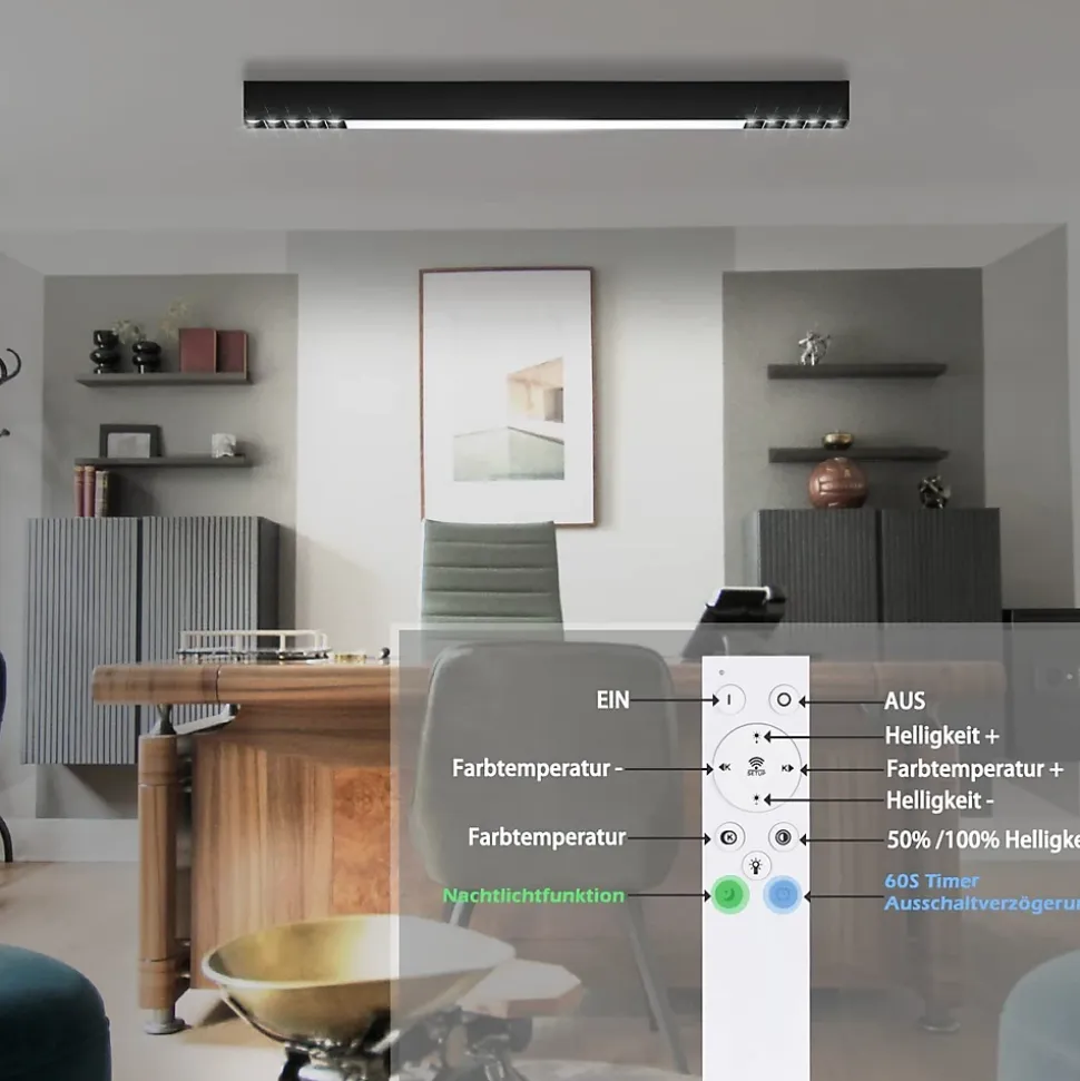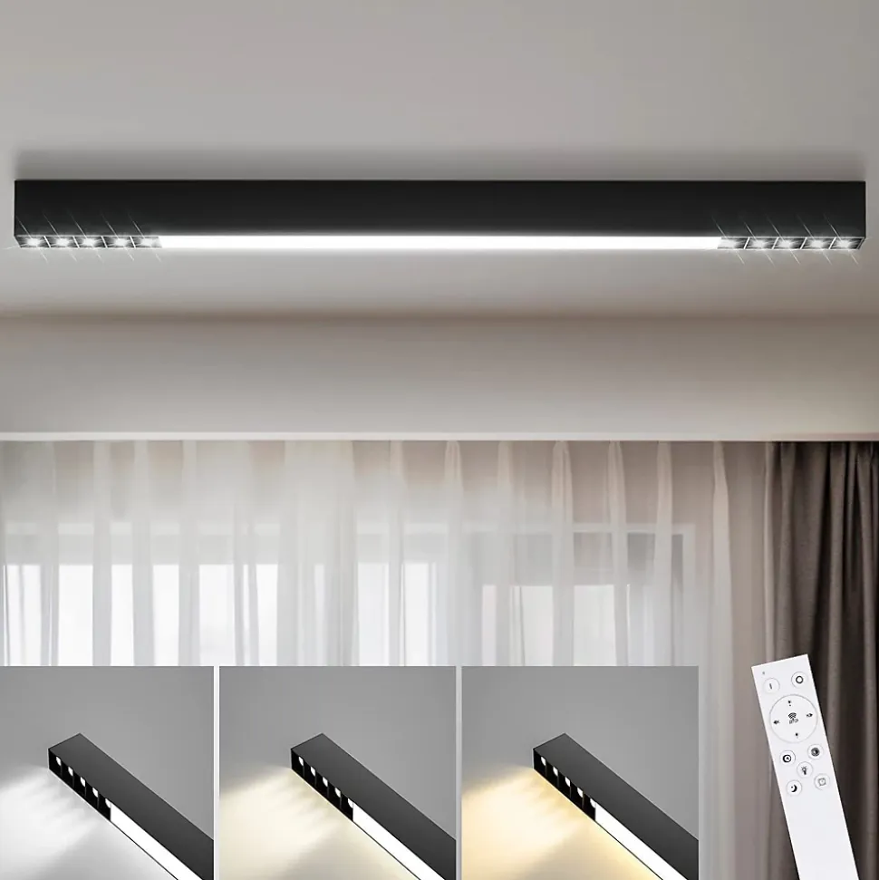 【Plafonnier LED à intensité variable】 Le plafonnier LED peut régler la lumière avec la télécommande pour créer une lumière uniforme et agréable. Il n’y a pratiquement aucune limite dans le choix d’une pièce et le plafonnier LED est particulièrement adapté aux pièces où les aspects fonctionnels de l’éclairage doivent être privilégiés, ou à ceux qui préfèrent généralement un design simple et pratique.【Détails techniques】 Dimensions du plafonnier : 80*3,5*5,5 cm ; Tension : 230 V, puissance : 25 W ; Intensité variable : oui ; Classe de protection : IP20 ; Matériau : PC, aluminium ; Les ampoules LED sont installées de manière permanente et une bonne efficacité énergétique peut être garantie grâce à la technologie LED. La durée de vie est de 25 000 heures.【Fonction mémoire】Grâce à la technologie CCT, vous pouvez facilement sélectionner la couleur de lumière appropriée entre blanc chaud, blanc neutre et blanc froid (3000K à 6500K) à l’aide de la télécommande incluse dans la livraison. Pour activer la fonction mémoire, allumez la lampe et attendez 8 secondes. Ensuite, éteignez-le et rallumez-le. La lumière enregistrera automatiquement la couleur de lumière précédente – les interrupteurs muraux ne sont pas applicables pour cela.【Domaines d’application】 Ce plafonnier à panneau long n’est pas seulement destiné aux salles d’étude, aux chambres à coucher, aux sous-sols, aux bureaux, aux magasins, aux établis, aux usines, aux couloirs, aux escaliers, aux lofts, aux buanderies, aux débarras, etc. par un accessoire d’éclairage très spécial.【Service client】 Nous offrons une garantie d’achat de 2 ans pour l’éclairage, notre service client est aussi unique que le design contemporain de nos lampes – une qualité qui convainc, si vous avez des questions, n’hésitez pas à nous contacter.