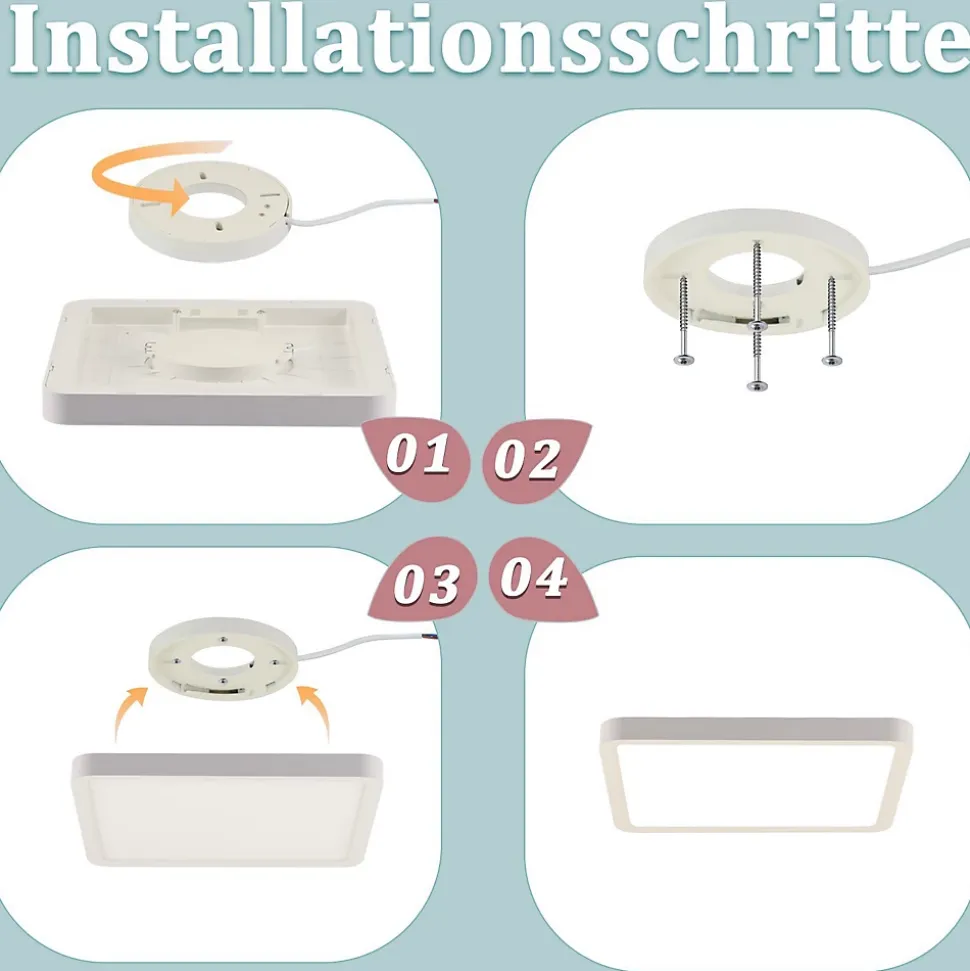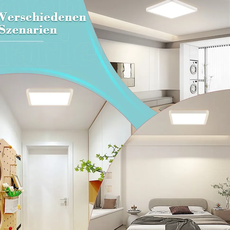 Design plat : avec seulement 2,5 cm d’épaisseur, ce plafonnier LED présente des lignes ultra fines et minimalistes. L’apparence mince et élégante s’intègre parfaitement dans n’importe quel design de pièce. L’éclairage blanc neutre 4000K crée une atmosphère chaleureuse et confortable.【Détails techniques】 Cette lampe de salle de bain de 18 W de haute qualité peut remplacer directement une ampoule de 180 W et est encore plus économe en énergie. Sa durée de vie peut atteindre 25 000 heures. Type de lampe : LED ; Puissance : 18 W ; Température de couleur : 4000K ; Dimensions : 23*23*2,5 cm ; Indice de rendu des couleurs : CRI > 80 ; Matériau : plastique ; Tension : 230 V.Protection des yeux : l’indice de rendu des couleurs élevé (CRI≥80) de la lampe de chambre fournit une lumière vive et naturelle, ce qui nous permet de percevoir avec précision les couleurs originales des objets. L’abat-jour est semi-transparent, permettant un éclairage uniforme et doux sans éblouissement ni scintillement. Cela réduit et protège efficacement la fatigue oculaire.Polyvalence : le plafonnier LED peut être facilement utilisé dans la salle de bain, sur le balcon et dans la cave à vin et empêche la poussière et les insectes de pénétrer à l’intérieur de la lampe. Leur matériau de revêtement protecteur efficace convient à la salle de bain, à la chambre à coucher, au couloir, à la cuisine, à la cave, au bureau, à la chambre d’enfant ou au salon.【Service client】 Nous offrons une garantie de 2 ans pour notre éclairage et notre service client est aussi unique que le design de notre lampe moderne, la qualité est impressionnante. Si vous avez des questions, vous pouvez nous contacter à tout moment. ※L’emballage de cette série de produits est en cours de mise à jour. S’il existe des différences dans l’emballage, veuillez vous référer aux informations sur la page détaillée du produit, le cas échéant.