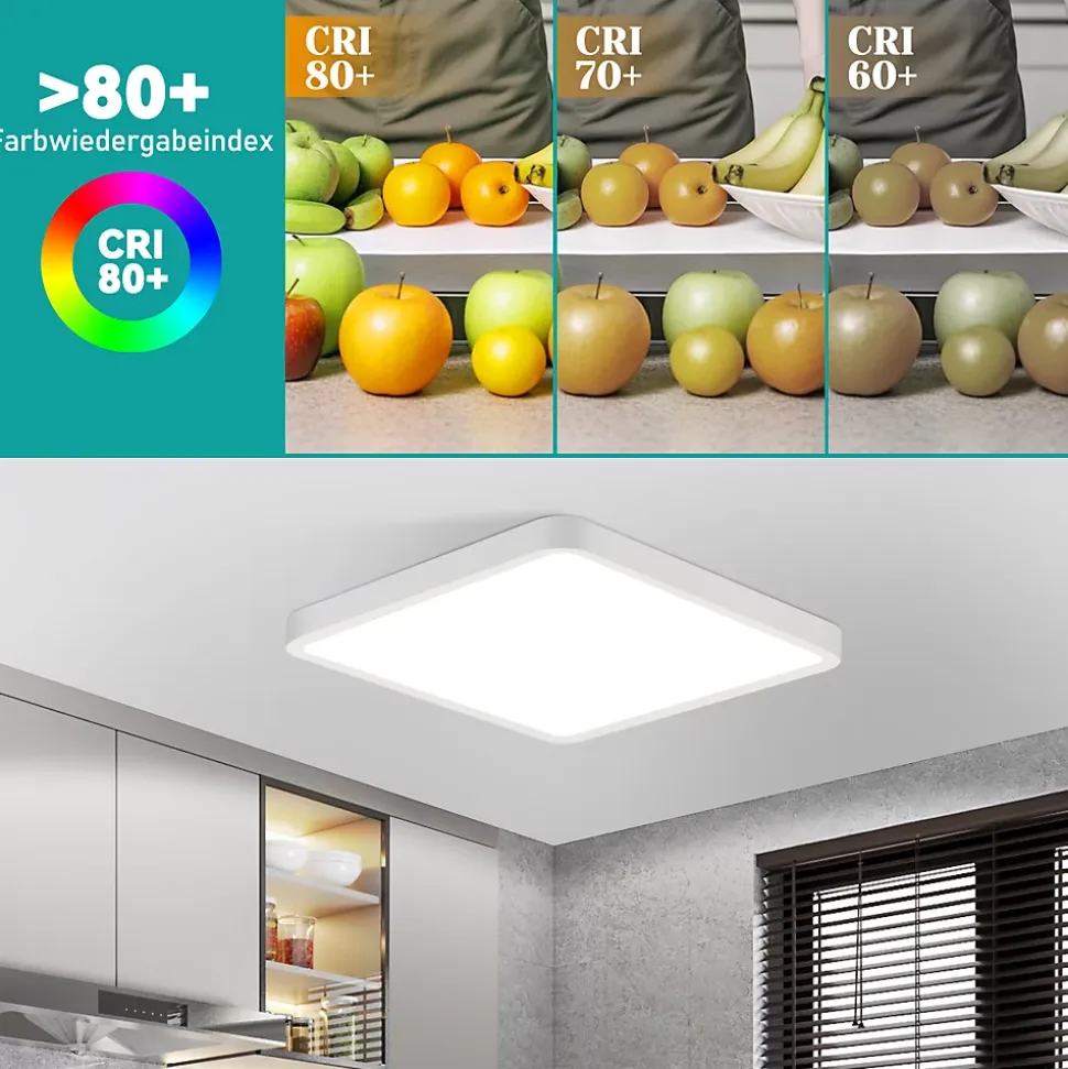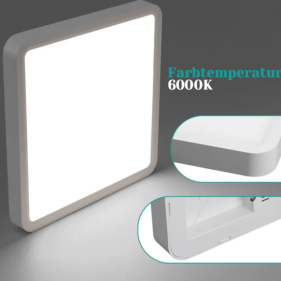 Design simple : Avec une longueur de bord de 23 cm, ce plafonnier LED présente des lignes minimalistes. L’aspect élégant s’intègre parfaitement dans n’importe quel design de pièce. L’éclairage blanc froid crée une atmosphère chaleureuse et confortable.Détails techniques : Cette lampe de salle de bain de 18 W de haute qualité peut remplacer directement une ampoule de 180 W et est encore plus économe en énergie. Sa durée de vie peut atteindre 25 000 heures. Type de lampe : LED ; Puissance : 18 W ; Température de couleur : 6 500 K ; Dimensions : 23*23*2,4 cm ; Matériau : plastique ; Tension : 230 V.Protection des yeux : l’indice de rendu des couleurs élevé de la lampe de chambre fournit une lumière vive et naturelle, nous permettant de percevoir avec précision les couleurs originales des objets. L’abat-jour est semi-transparent, permettant un éclairage uniforme et doux sans éblouissement ni scintillement. Cela réduit et protège efficacement la fatigue oculaire.Polyvalence : le plafonnier LED peut être facilement utilisé dans la salle de bain, le balcon et la cave à vin et empêche la poussière et les insectes de pénétrer à l’intérieur de la lampe. Leur matériau de revêtement protecteur efficace convient à la salle de bain, à la chambre à coucher, au couloir, à la cuisine, à la cave, au bureau, à la chambre d’enfant ou au salon.Service client : nous offrons une garantie de 2 ans pour notre éclairage et notre service client est aussi unique que le design de notre lampe moderne, la qualité est impressionnante. Si vous avez des questions, vous pouvez nous contacter à tout moment.