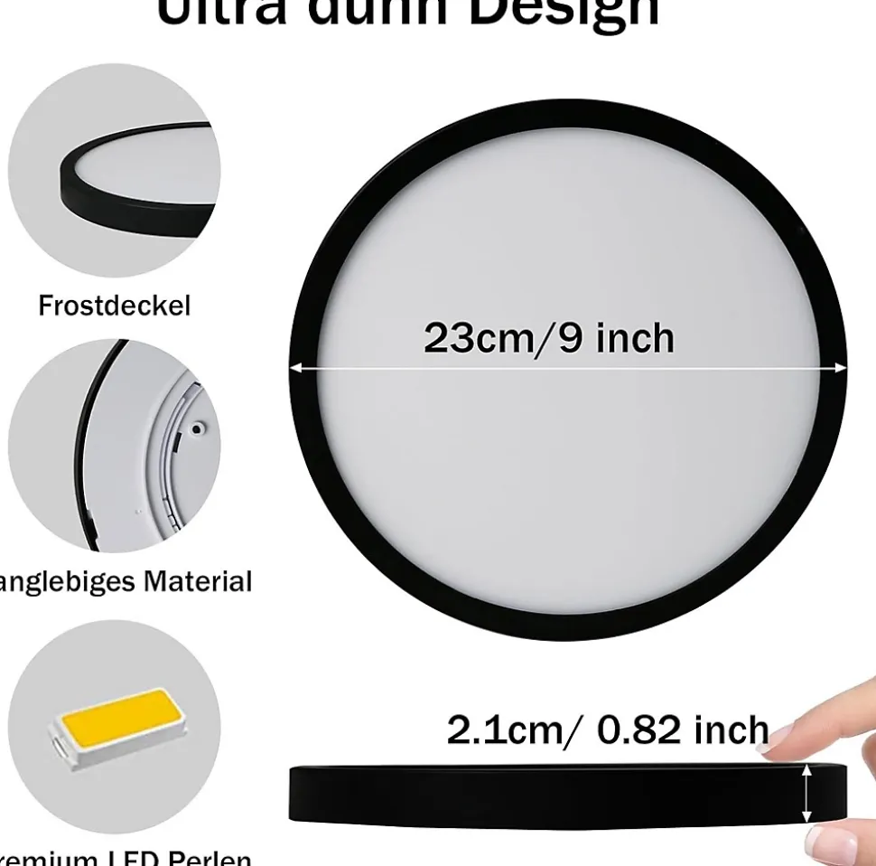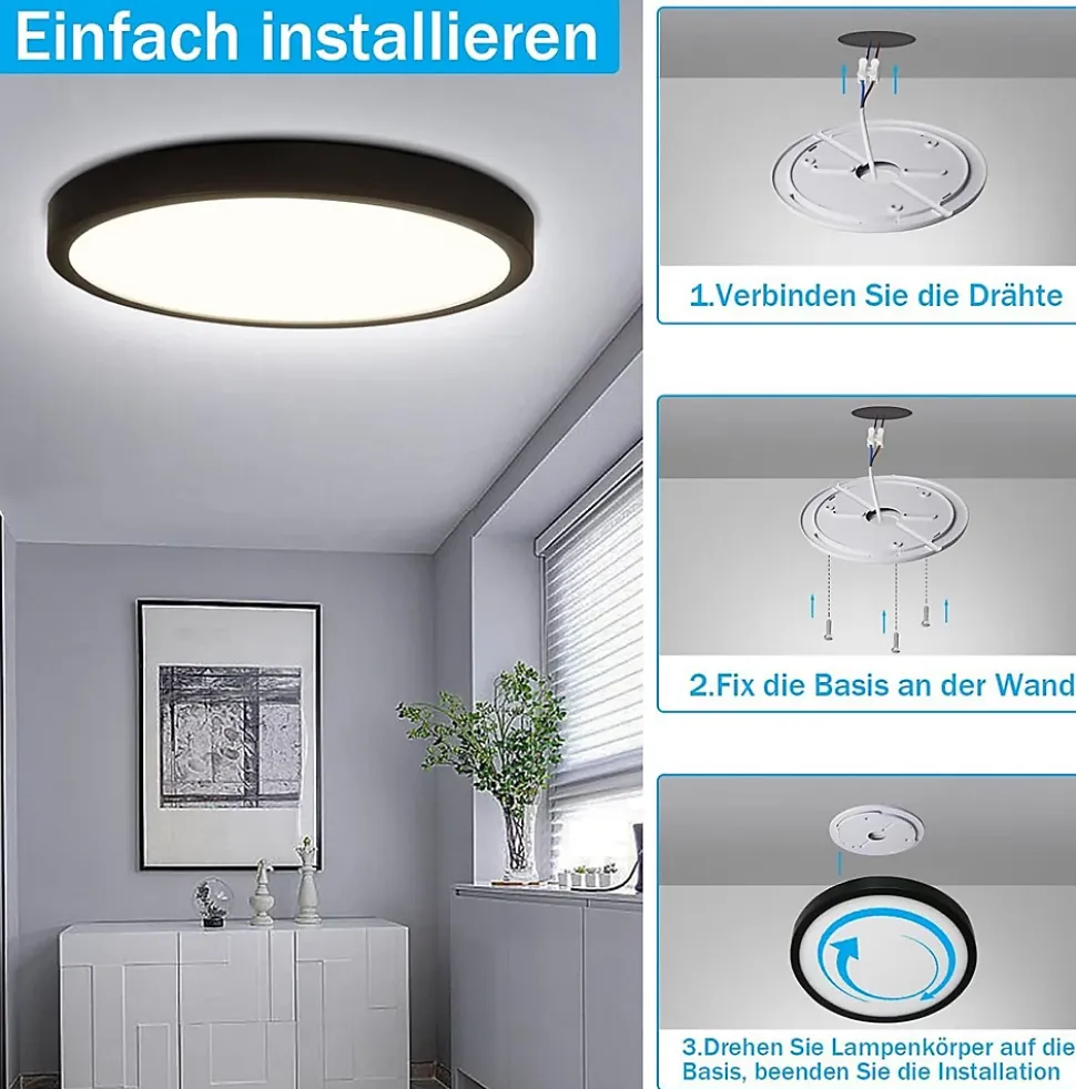 【Super lumineux et économe en énergie】le plafonnier rond plat NETTLIFE 24 W remplace l’ampoule classique de 150 W, très lumineux et la lampe LED moderne peut éclairer la plupart des zones de la pièce et permet d’économiser plus de 88 % sur les coûts d’électricité. Les ampoules LED sont installées de manière permanente et convainquent par une longue durée de vie allant jusqu’à 30 000 heures, très pratique.【Design ultra fin et lumière blanche neutre】 l’épaisseur de la lampe LED de salon Flat n’est que de 2,1 cm, elle est plate et plus fine. Et le design rond élégant donne aux lampes un aspect plus élégant et moderne, qui s’adapte parfaitement à n’importe quel style d’intérieur. La lumière blanche neutre de 4 000 K vous procure une sensation chaleureuse et uniforme, parfaite comme lampe de salon ou de bureau.【Protection des yeux et sans scintillement 】ce plafonnier LED rond noir moderne a une transmission lumineuse plus élevée, la lumière est répartie uniformément et doucement dans toute la pièce, offrant ainsi une lumière agréable et non éblouissante. Et la lampe de chambre ronde ne scintille pas, elle peut protéger vos yeux de la lumière vive. La lampe plate a un indice de rendu des couleurs élevé de CRI80+, elle fournit une lumière vive et naturelle.【Installation facile et large application 】vous pouvez utiliser les accessoires inclus pour installer le plafonnier vous-même. Au total, deux fils (L et N) sont nécessaires et il n’est pas nécessaire de connecter le câble de masse. Le plafonnier LED rond de 24 W convient aux salons, chambres à coucher, chambres d’enfants, restaurants, salles de bains, cuisines, couloirs, balcons, sous-sols, portes d’entrée, escaliers, entrepôts, hôtels, etc.【Étanche et facile à nettoyer】l’abat-jour du plafonnier est certifié étanche IP44 et empêche la poussière et les moustiques de pénétrer dans la lumière. Le nettoyage de l’abat-jour blanc mat est très simple, il suffit de l’essuyer avec un chiffon.
