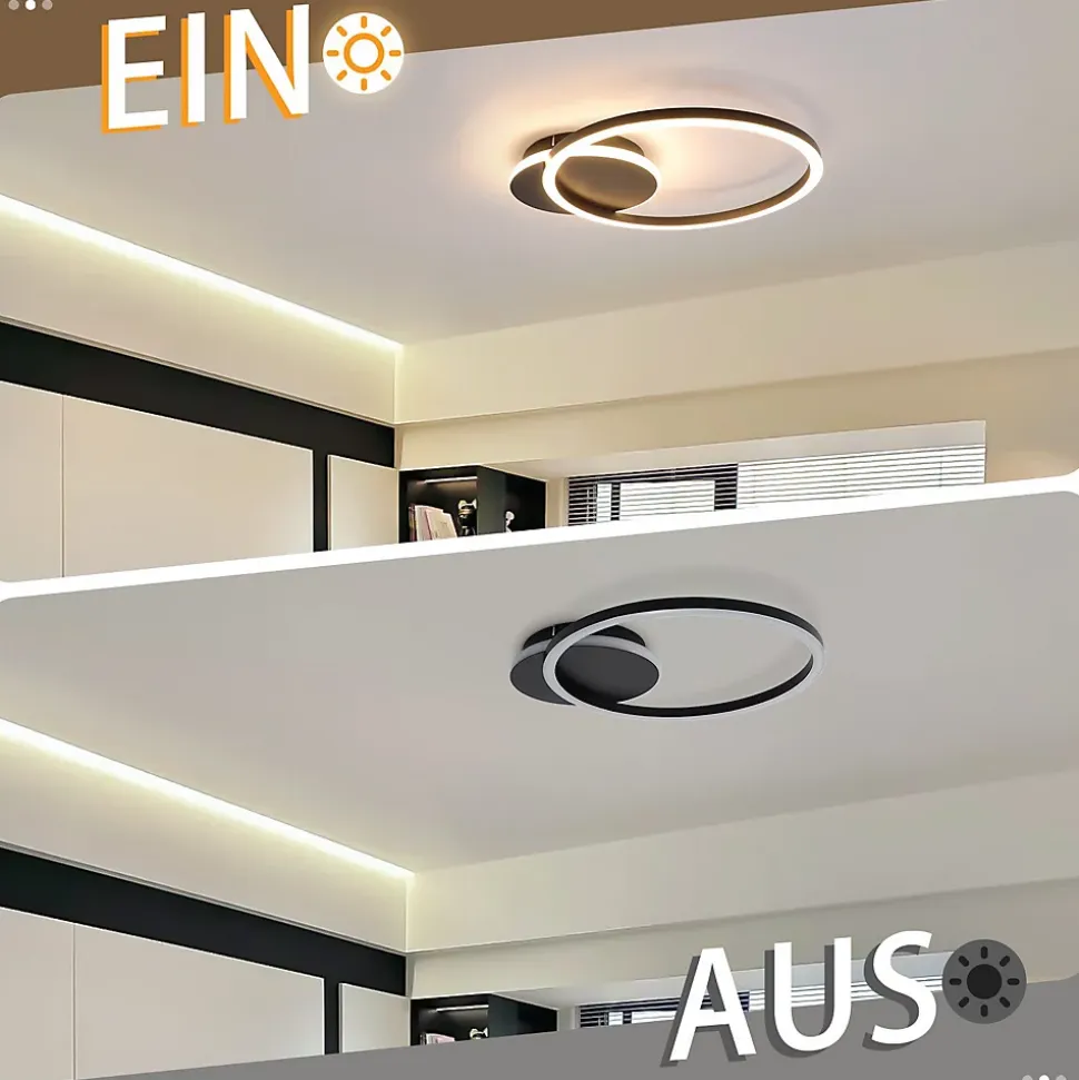 Design moderne : le plafonnier LED adopte la forme créative du corps de la lampe double ronde, une apparence unique, une palette de couleurs assorties classique, un sens moderne, offre un effet d’éclairage confortable pour votre pièce en même temps, c’est également une lampe décorative de décoration intérieure parfaiteEfficacité énergétique et protection des yeux : le plafonnier moderne atteint jusqu’à 2300 lumens, ce qui le rend plus économe en énergie que les ampoules classiques et a une durée de vie allant jusqu’à 20 000 heures. Avec la source lumineuse LED stable, sans éblouissement et sans scintillement, le plafonnier peut protéger vos yeux et créer une atmosphère chaleureuse dans votre pièceLarge application : ce plafonnier LED moderne et élégant est parfait pour une utilisation comme lampe de chambre, lampe de salon, lampe de cuisine. Convient pour un espace de 5 à 15 mètres carrés tel que le salon, la chambre, la salle à manger, la cuisine, la chambre d’enfants, le bureau, etc.Spécifications du produit : La taille du plafonnier noir est de 35*30*5cm, tension : 220-240V, puissance : 24W, température de couleur : 3000K blanc chaud, non dimmable. Le corps du plafonnier est en métal de haute qualité, anti-corrosion et antirouille, robuste et durableInstallation facile : conception d’installation humanisée, connectez simplement le câble et vissez le plafonnier au plafond pour une installation facile. Si vous avez des questions, veuillez nous contacter, nous résoudrons le problème dans les plus brefs délais