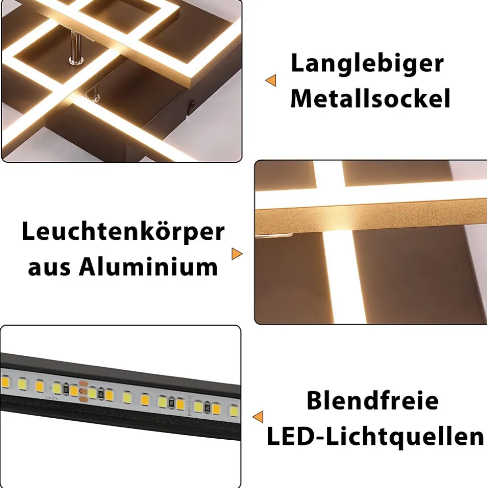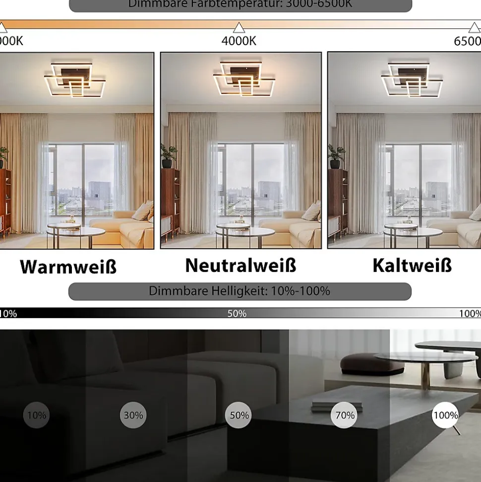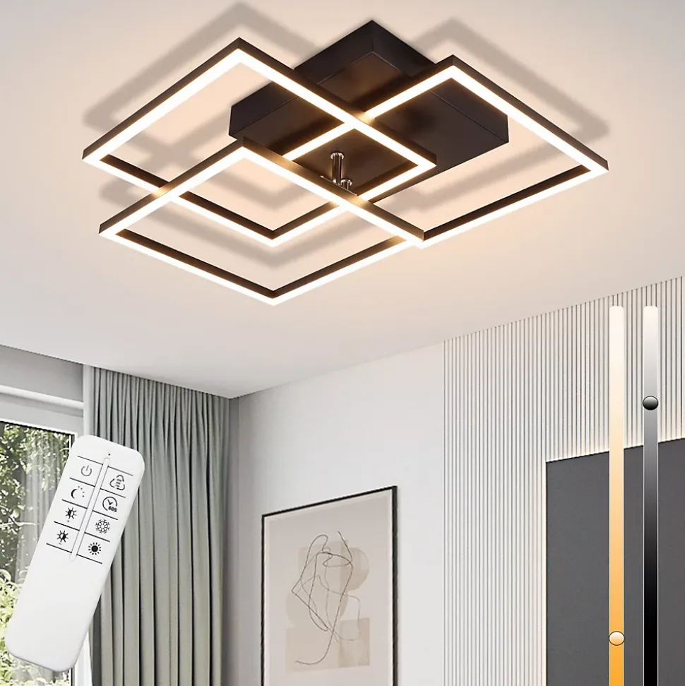 design moderne : le plafonnier led présente un design géométrique composé de 3 éléments lumineux carrés qui se croisent dans une forme élégante et minimaliste. Ce n’est pas seulement une lumière d’intérieur décorative parfaite, mais fournit également un éclairage chaleureux pour votre pièce. Fonction variateur et mémoire : la luminosité (10%-100%) et la température de couleur (3000k-6500k) du plafonnier led peuvent être réglées à l’aide de la télécommande incluse. Grâce à la fonction minuterie, les plafonniers s’éteignent automatiquement 60 secondes avant d’aller se coucher. Et vous pouvez également régler le mode veilleuse (10% de luminosité) pour vous endormir plus rapidement. La fonction mémoire enregistre la dernière température de couleur et la dernière luminosité réglées (plus de 10 s d’arrêt). Efficacité énergétique et protection des yeux : plafonnier carré moderne 36w, 4000lm, plus économe en énergie que les ampoules classiques, avec une longue durée de vie de plus de 20 000 heures. Le rendu des couleurs élevé (cri> 80) assure un meilleur effet visuel, le plafonnier adopte une source de lumière led stable, sans éblouissement et sans scintillement, ce qui peut mieux protéger vos yeux. Large application : ce plafonnier led moderne et élégant est parfait pour une utilisation comme lampe de chambre, lampe de salon, lampe de cuisine. Convient pour un espace de 5 à 20 mètres carrés tel que salon, chambre, salle à manger, cuisine, chambre d’enfants, bureau, salle de jeunesse, etc. La télécommande utilise la technologie de télécommande sans fil 2,4 g, qui est plus sensible. Installation facile : conception d’installation humanisée, l’installation du plafonnier à intensité variable et l’utilisation de la télécommande se trouvent dans le manuel d’instructions dans l’emballage. Si vous rencontrez des problèmes lors de l’installation ou de l’utilisation, veuillez nous contacter, nous résoudrons le problème pour vous dans les plus brefs délais.