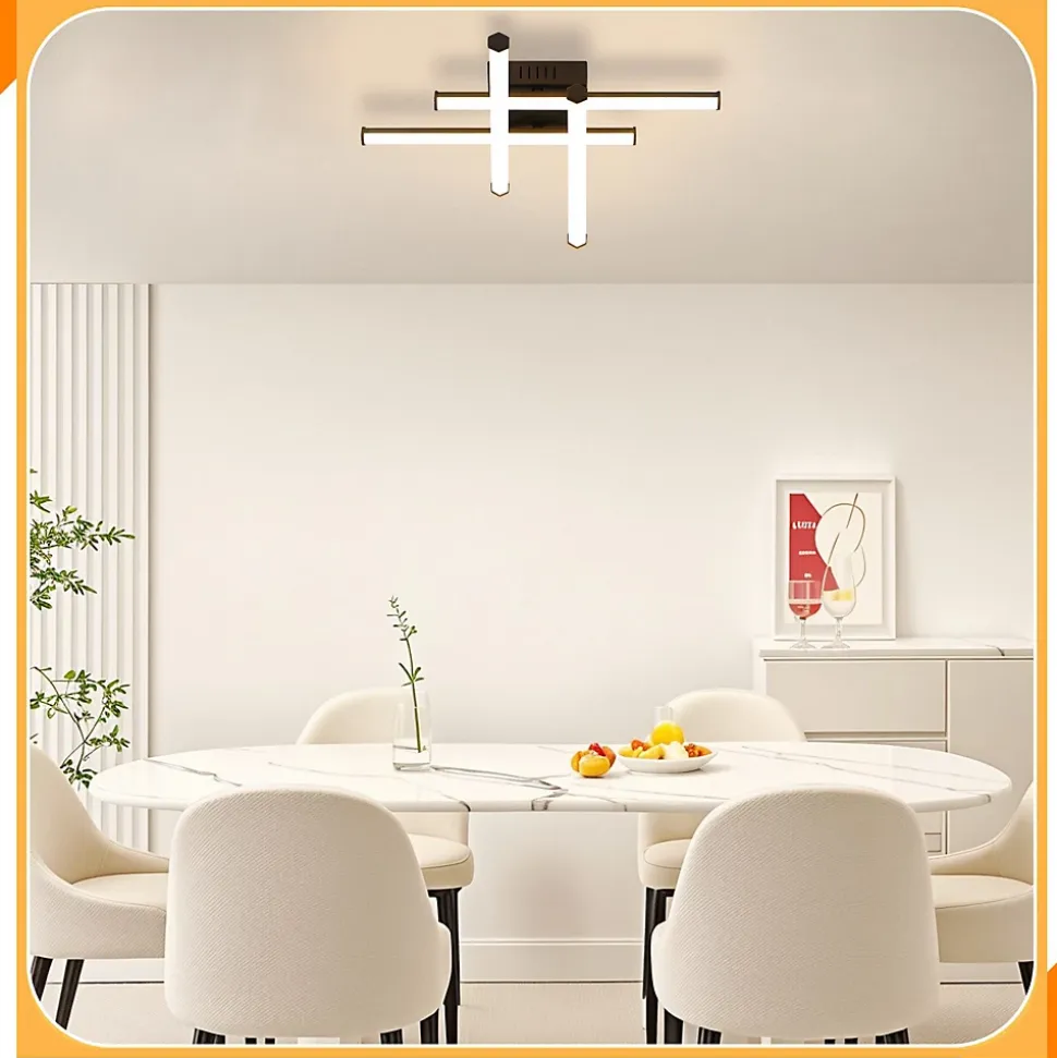 Design moderne : ce plafonnier LED a un design simple avec 4 tubes hexagonaux croisés, qui s’adapte parfaitement au style de mobilier moderne et fournit un éclairage pratique pour votre vie quotidienne.Température de couleur : température de couleur chaude de 3 000 K, lumière douce, proche de la lumière naturelle, sans effet stroboscopique, sans éblouissement, n’irrite pas les yeux et convient à une utilisation à long terme pour créer une atmosphère de vie confortable.Différentes formes : Ce plafonnier est intelligemment conçu. Le module LED de ligne sur l’anneau extérieur peut être tourné pour prendre différentes formes afin de répondre aux différents besoins de bricolage et offrir la meilleure expérience visuelle.Informations sur le produit : Taille 44 x 12 x 6 cm, puissance 24 W, fabriqué en métal et plastique pour garantir durabilité et beauté, adapté à toutes sortes de décorations intérieures.Champ d’application : convient pour le salon, la chambre, la cuisine, le bureau, le couloir et autres décorations intérieures. Son look moderne et son éclairage agréable en font un choix de décoration idéal.