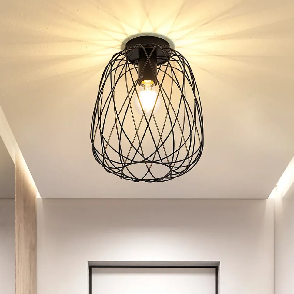 【Haute qualité】 Ce plafonnier industriel est fabriqué en métal de haute qualité avec une surface peinte, résistante à la corrosion, robuste et durable, et a une longue durée de vie. La lampe de couloir a été oxydée et sa couleur noir mat est classique et attrayante, simple et unique, ce qui en fait un bel ajout à votre maison.【Point culminant du design】 Ce plafonnier avec son design de panier rond en métal apporte une touche rétro-industrielle caractéristique à votre pièce. Le look élégant et rétro de la lampe de chambre est encore renforcé par la surface mate, qui donne à l’ensemble une touche chic.【Libre choix de source lumineuse】 Compatible avec la douille E27. La lampe de salon est livrée sans source lumineuse, vous donnant la liberté de choisir le type de source lumineuse que vous aimez. Le plafonnier de cuisine prend en charge une puissance allant jusqu’à 40 W, ce qui le rend parfait pour vos besoins d’éclairage personnels.Polyvalent : cette lampe cage est idéale pour décorer une variété de pièces, y compris les couloirs, les salons, les restaurants, les bureaux, les balcons, les cages d’escalier, les greniers, les cuisines, les chambres et les bars. Où que vous soyez, les plafonniers du salon créent une atmosphère unique. .【Facile à installer】 Le plafonnier industriel E27 a une structure simple et est encore plus facile avec les instructions que nous fournissons. La tension de fonctionnement des plafonniers des maisons de campagne est de 220-240 V, ce qui est courant dans la plupart des ménages. L’installation est rapide et économique (assurez-vous d’abord de couper l’alimentation lors de l’installation).