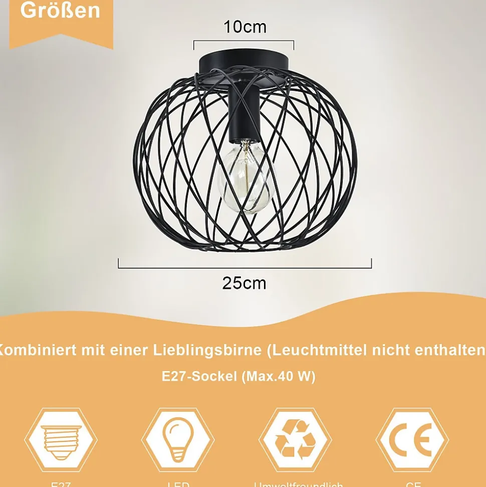 Point fort du design : ce plafonnier avec son design en forme de panier rond en métal apporte une touche rétro-industrielle caractéristique à votre pièce. Le look élégant et rétro de la lampe de chambre est encore renforcé par la surface mate, qui donne à l’ensemble une touche chic.Libre choix de la lampe : Compatible avec les douilles E27 La lampe de salon est livrée sans source lumineuse, ce qui vous donne la liberté de choisir votre type de lampe préféré. Un seul spot de plafond vintage prend en charge jusqu’à 40 W, parfait pour vos besoins d’éclairage individuels.Polyvalent : cette lampe cage est idéale pour décorer une variété de pièces, notamment les couloirs, les salons, les restaurants, les bureaux, les balcons, les cages d’escalier, les greniers, les cuisines, les chambres et les bars, où que vous soyez, les plafonniers créent un espace de vie une atmosphère unique .Facile à installer : avec sa structure simple et ses dimensions de 25*25*19CM, le plafond de lampe industrielle est facile à installer. La lampe de cuisine fonctionne avec l’électricité habituelle de 220-240 V dans la plupart des foyers, ce qui permet une installation rapide et sans trop d’effort.Haute qualité : Robuste et durable Fabriqué en fer avec une surface peinte, ce plafonnier e27 résiste à la corrosion et offre une longue durée de vie. La lampe de couloir est une pièce d’oxydation et une couleur fiables, ce qui en fait un luminaire fiable et durable.