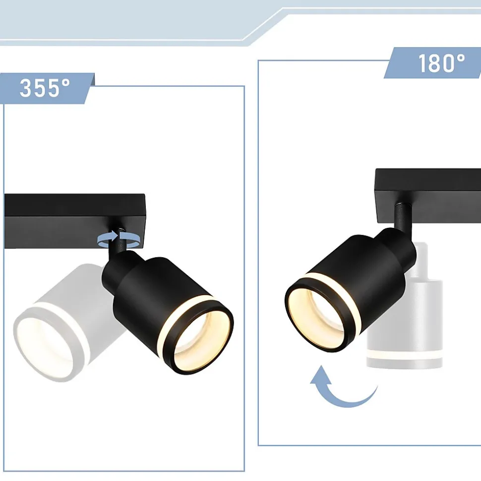 DESIGN MODERNE : Ce spot de plafond est fabriqué en métal robuste, résistant à l’humidité et à la rouille. Le design minimaliste et élégant donne à votre pièce une touche moderne et décorativeHAUTE FLEXIBILITÉ : Les spots de plafond peuvent être réglés de haut en bas de 180° et pivotés de 355°. Cela permet un éclairage ciblé de différentes zones de la pièce et répond aux besoins d’éclairage individuels pour créer un environnement lumineux agréable.AMPOULES INTERCHANGEABLES : Le spot de plafond cuisine est compatible avec les lampes GU10 jusqu’à 25 W maximum. Selon vos besoins, vous pourrez choisir entre des lampes GU10 blanc chaud, blanc froid ou RGB. Veuillez noter que les ampoules ne sont pas inclusesAPPLICATIONS POLYVALENTES : Ce plafonnier moderne peut également être utilisé comme applique murale ou comme spot de plafond et convient aussi bien à un éclairage ciblé qu’à l’éclairage général d’une pièce. Idéal pour différentes pièces comme le salon, la chambre, le couloir, la chambre d’enfant, la cuisine et le balcon.DIVERSES OPTIONS ET SERVICE COMPLET : Les spots de plafond GU10 sont disponibles en noir et blanc et sont disponibles en versions avec 1, 2, 3, 4, 5 ou 6 têtes de lampe ainsi qu’en version ronde 3 têtes et carrée 4 têtes. Il est livré avec du matériel de montage et des instructions d’installation détaillées. De plus, nous offrons un service client complet et une assistance en ligne pour vous aider en cas de questions ou de problèmes d’installation.