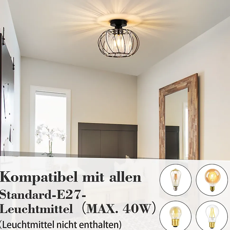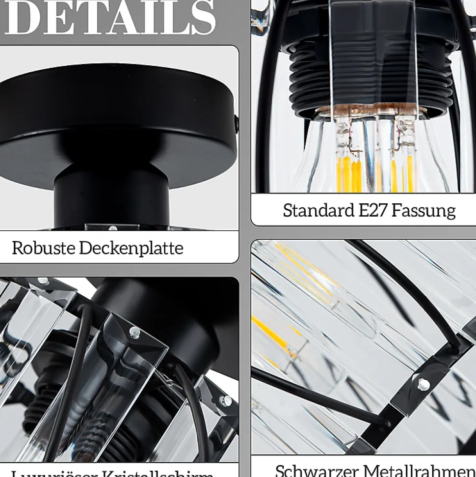 DESIGN MODERNE : Ce plafonnier romantique et luxueux, doté d’un abat-jour en cristal transparent et d’un cadre extérieur en métal noir, allie modernité élégante et élégance d’un lustre en cristal. C’est un excellent choix pour éclairer votre intérieur. MATÉRIAU DE QUALITÉ SUPÉRIEURE : Son abat-jour en cristal de qualité supérieure, hautement transparent et brillant, reflète une lumière scintillante et confère une ambiance luxueuse et artistique à la pièce. Il s’intègre parfaitement à différents styles d’intérieur, notamment moderne, européen et luxueux. SOURCES LUMINEUSES DISPONIBLES : Ce plafonnier de couloir est équipé d’une douille E27, compatible avec une grande variété de sources lumineuses, vous permettant de choisir facilement la source E27 la plus adaptée à vos besoins et préférences. Assurez-vous qu’il réponde à vos différents besoins d’éclairage. Remarque : Diamètre d’ouverture de l’abat-jour : 95 mm ; une source lumineuse LED étroite et courte est recommandée (ampoule non incluse). UTILISATION POLYVALENTE : Avec son diamètre de 15 cm, ce plafonnier noir est idéal pour les petites pièces, les couloirs, les salons, les entrées, les foyers, les cages d’escalier, etc. Il offre une luminosité suffisante dans les espaces confinés sans occuper trop d’espace. Dans les grandes pièces comme les chambres, les salons ou les bars, cafés et restaurants, plusieurs plafonniers peuvent être placés pour assurer un éclairage suffisant tout en créant une atmosphère chaleureuse et conviviale. INSTALLATION ET SERVICE CLIENT FACILES : Instructions détaillées et accessoires nécessaires inclus. Une fois tous les fils et câbles connectés, installez le plafonnier en cristal en quelques minutes et insérez l’ampoule dans le socle pour l’éclairer. Pour toute question concernant nos plafonniers, n’hésitez pas à nous contacter. Nous vous répondrons sous 24 heures.
