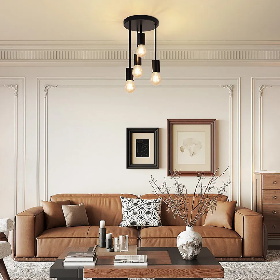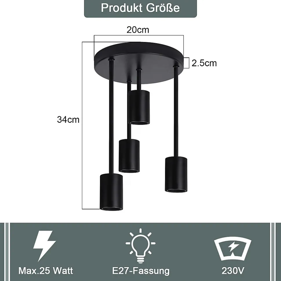 Flexible et pratique : ce plafonnier a 4 longueurs différentes, qui non seulement offrent des lignes visuellement claires, mais élargissent également votre zone d’éclairage. Le cadre en métal noir s’harmonise parfaitement avec le support de plafond noir. Sa préférence pour les couleurs anciennes prend tout son sens, notamment en combinaison avec les ampoules Edison.Design industriel artistique : la lampe de cuisine impressionne par ses matériaux de haute qualité et son aspect exquis. Le noir classique donne à cette lampe de cuisine un look intemporel et élégant. Un savoir-faire précis et des matériaux de haute qualité rendent ce produit particulièrement durable et esthétiqueMatériaux de haute qualité : la douille est en métal, avec une base en métal noir et une conception de peinture en aérosol qui empêche la rouille et facilite l’installation et le nettoyage. Nous veillons à ce que chaque plafonnier soit soigneusement traité pour éviter les arêtes vives, les résidus de matériaux ou les marques de meulageAmpoules E27 remplaçables : cette lampe de salon sans ampoule répond à tous vos besoins de bricolage. Vous pouvez changer les ampoules E27 en fonction de votre style actuel, qu’il soit rétro, moderne, intelligent ou RGB. Qu’il s’agisse d’un style d’ameublement moderne ou antique, cette lampe ajoutera du confort à votre maison. Attention cependant, la puissance maximale par ampoule doit être ≤25WInstallation facile et achat sans souci : le processus d’installation du plafonnier est très simple. Aucun outil ni étape compliquée n’est requis pour terminer rapidement l’installation. Nous vérifions soigneusement chaque lampe avant l’expédition. Si vous avez des questions, n’hésitez pas à nous contacter