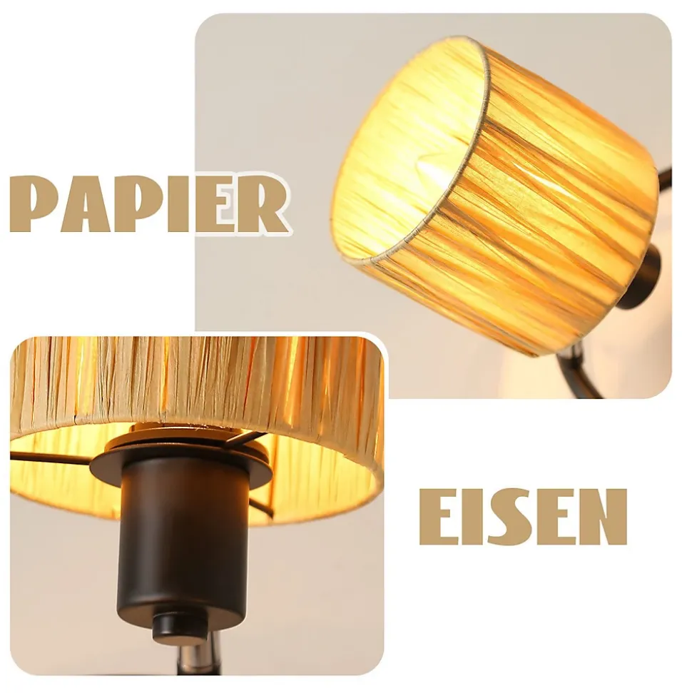 design unique : ce spot de plafond a un design rétro avec une ampoule e14 classique et dégage une forte atmosphère nostalgique. Abat-jour en papier unique, texture délicate, bonne transmission de la lumière, de sorte que la lumière est plus douce et plus chaude, apportant une touche d’art à votre pièce. La combinaison parfaite du fer et du papier montre non seulement le goût rétro, mais souligne également le concept de protection de l’environnementdétails techniques : dimensions : 34,5*17,5*16,5 cm ; taille du corps de la lampe : 11*10 cm ; taille du plateau de plafond : 9 cm ; support principal : 30 cm ; source lumineuse : e14*2 (sans ampoule) ; puissance : max. 25 w ; tension : 220-240 vca ; matériau : fer + papier ; angle de pivotement : 90° vers le haut et vers le bas, 350° vers la gauche et vers la droitedouille e14 : ce spot est équipé d’une douille e14, vous pouvez donc choisir librement différents types de lampes pour répondre aux besoins d’éclairage individuels et créer différentes ambiances. Attention : notre produit ne contient pas d’ampoulesinstallation facile : le spot de plafond a un design simple et est facile à installer. Il est parfait pour une installation dans le salon, la salle à manger, la chambre, le bureau et de nombreuses autres pièces pour ajouter de l’individualité et du style à votre maisongarantie d’achat : si vous avez des questions, des suggestions, des doutes ou des préoccupations, n’hésitez pas à nous contacter. Nous vous répondrons dans les 24 heures et résoudrons le problème dans les plus brefs délais