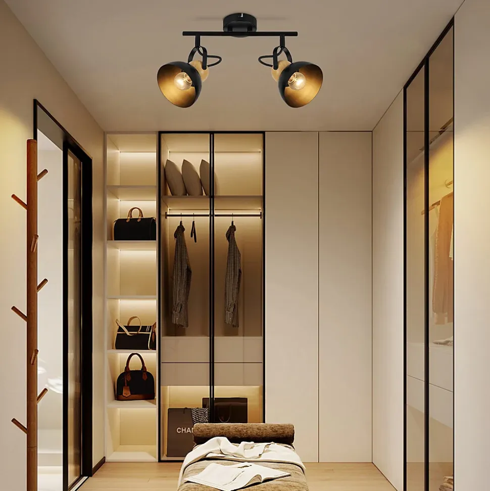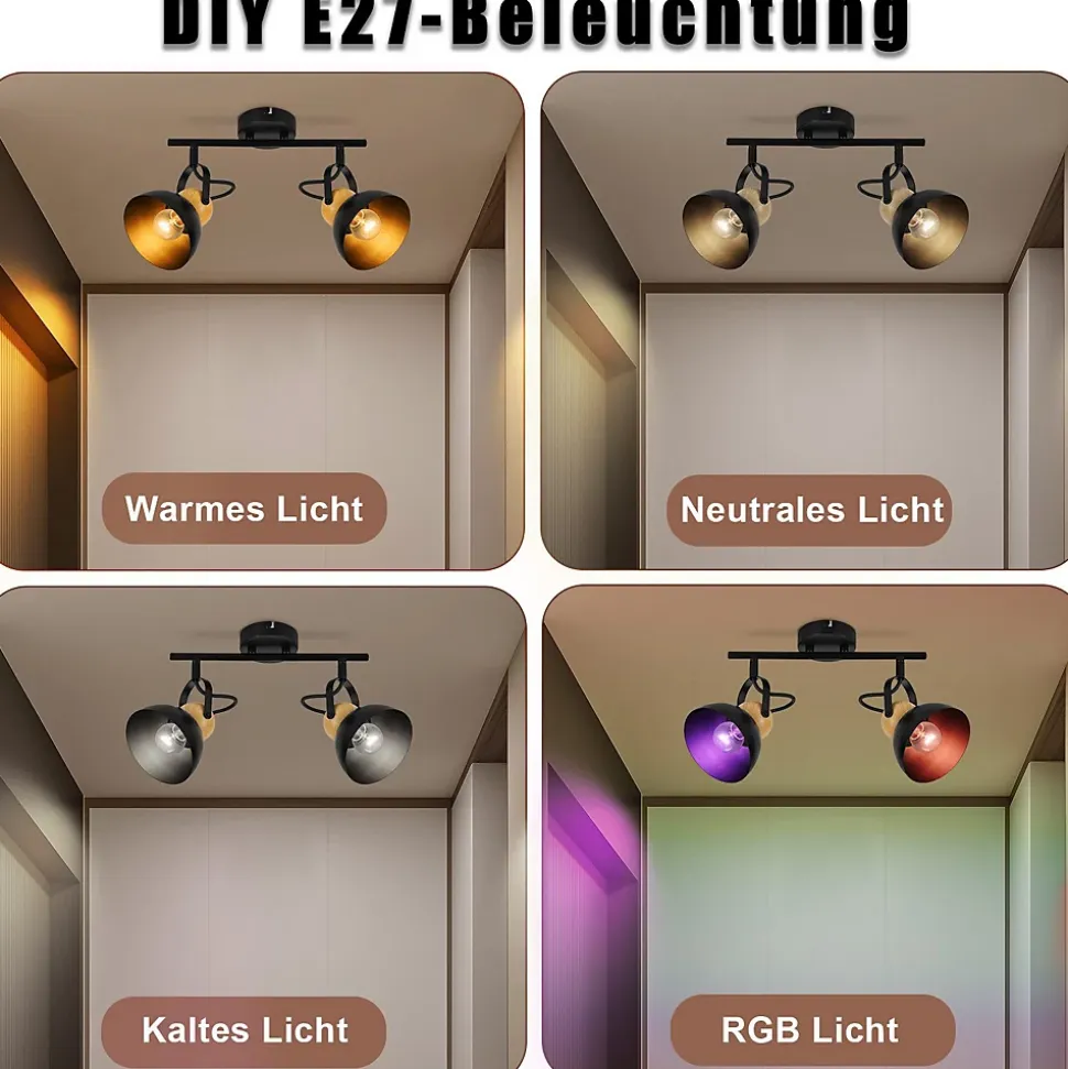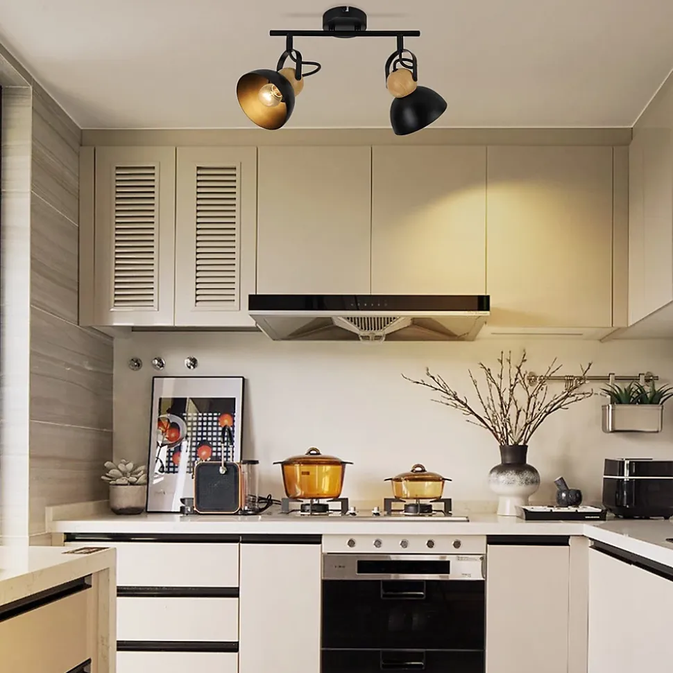 Design rétro et matériaux robustes : ce spot de plafond de style industriel vintage combine le métal noir avec le grain du bois et donne à votre pièce un charmant look rétro. Fabriqué en fer résistant, le plafonnier E27 bénéficie d’un traitement métallique spécial qui empêche le pelage et la rouille. Un luminaire élégant et durable, à la fois moderne et robusteDouille E27 standard : Ce spot de plafond rétro est compatible avec diverses ampoules E27. Puissance nominale : Max.25W. Tension : 220 V-240 V. Ce plafonnier peut être utilisé avec différents types d’ampoules, notamment des ampoules halogènes, LED, CFL et à incandescence, qui peuvent toutes créer un effet d’éclairage attrayant. Attention : l’ampoule n’est pas incluseSpot de plafond pivotant et rotatif : Le plafonnier noir est équipé de 2 têtes réglables orientables à 350° horizontalement et à 180° verticalement. Cela vous permet de cibler la lumière pour répondre à différents besoins d’éclairage. Cet éclairage flexible crée une atmosphère individuelle et illumine votre pièce d’une manière uniqueDimensions et données : Taille des spots de plafond : 33 x 21 x 15 CM ; Diamètre des abat-jour : 12 CM ; Poids des spots de plafond : 0, 86 KG ; Classe de protection : II. Notre plafonnier industriel est livré avec tout le matériel de montage et des instructions détaillées pour que vous puissiez l’installer sans effort.Large gamme d’applications : ce spot de plafond peut être utilisé aussi bien comme plafonnier que comme applique murale et offre un éclairage ciblé et général de la pièce. Il est parfait pour différentes pièces telles que le salon, la chambre, le couloir, l’entrée, le balcon, la cuisine et la chambre d’enfant. Si vous avez des questions sur le plafonnier, nous sommes disponibles à tout moment et serons heureux de vous aider à résoudre tout problème.