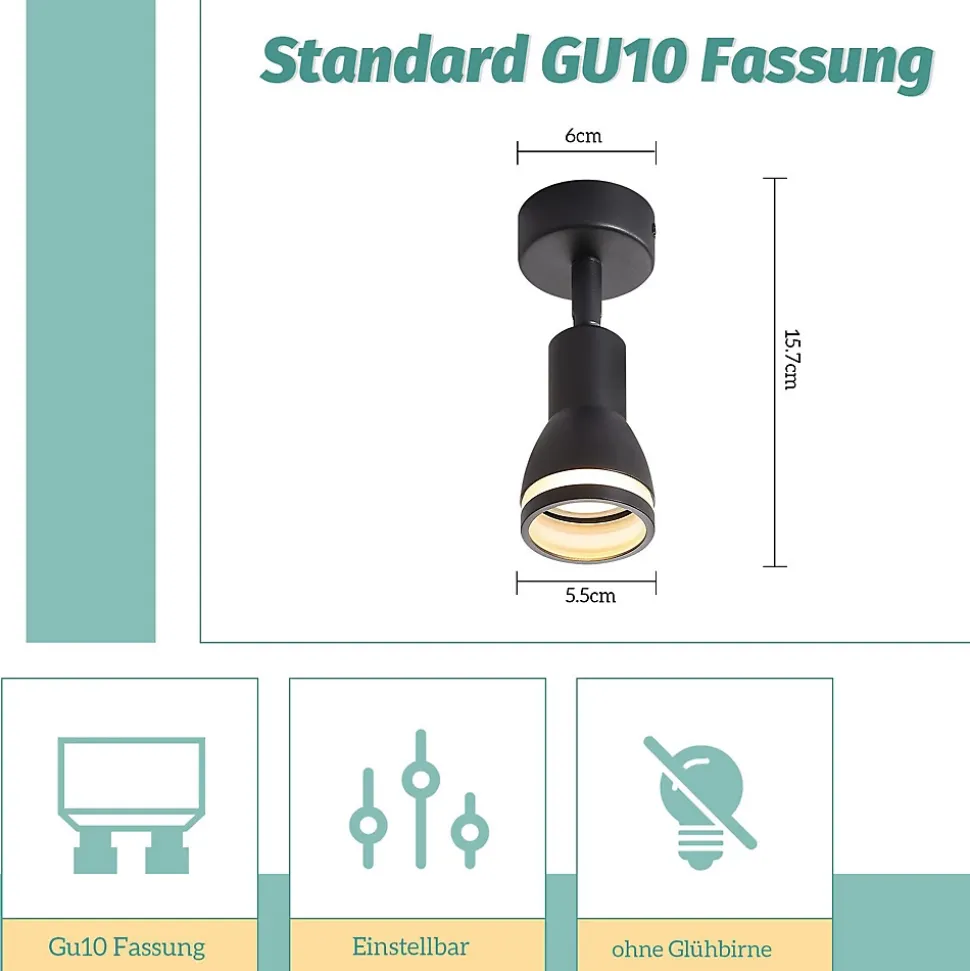 DESIGN MODERNE : Ce spot de plafond est fabriqué en métal noir robuste, résistant à l’humidité et à la rouille. Le design minimaliste et élégant donne à votre pièce une touche moderne et décorativeHAUTE FLEXIBILITÉ : Les spots de plafond peuvent être réglés de haut en bas de 180° et pivotés de 355°. Cela permet un éclairage ciblé de différentes zones de la pièce et répond aux besoins d’éclairage individuels pour créer un environnement lumineux agréable.AMPOULES INTERCHANGEABLES : Le spot de plafond pour couloir est compatible avec les lampes GU10 jusqu’à 40 W maximum. Selon vos besoins, vous pouvez choisir entre des lampes GU10 blanc chaud, blanc froid ou RGB. Veuillez noter que les ampoules ne sont pas inclusesAPPLICATIONS POLYVALENTES : Ce plafonnier moderne peut également être utilisé comme applique murale ou comme spot de plafond et convient aussi bien à l’éclairage ciblé qu’à l’éclairage général de la pièce. Idéal pour différentes pièces comme le salon, la chambre, le couloir, la chambre d’enfant, la cuisine et le balcon.DIVERSES OPTIONS ET SERVICE COMPLET : Les spots de plafond GU10 sont disponibles en noir et blanc et sont disponibles en versions avec 1, 2, 3, 4, 5 ou 6 têtes de lampe ainsi qu’en version ronde 3 têtes et carrée 4 têtes. Il est livré avec du matériel de montage et des instructions d’installation détaillées. De plus, nous offrons un service client complet et une assistance en ligne pour vous aider en cas de questions ou de problèmes d’installation.