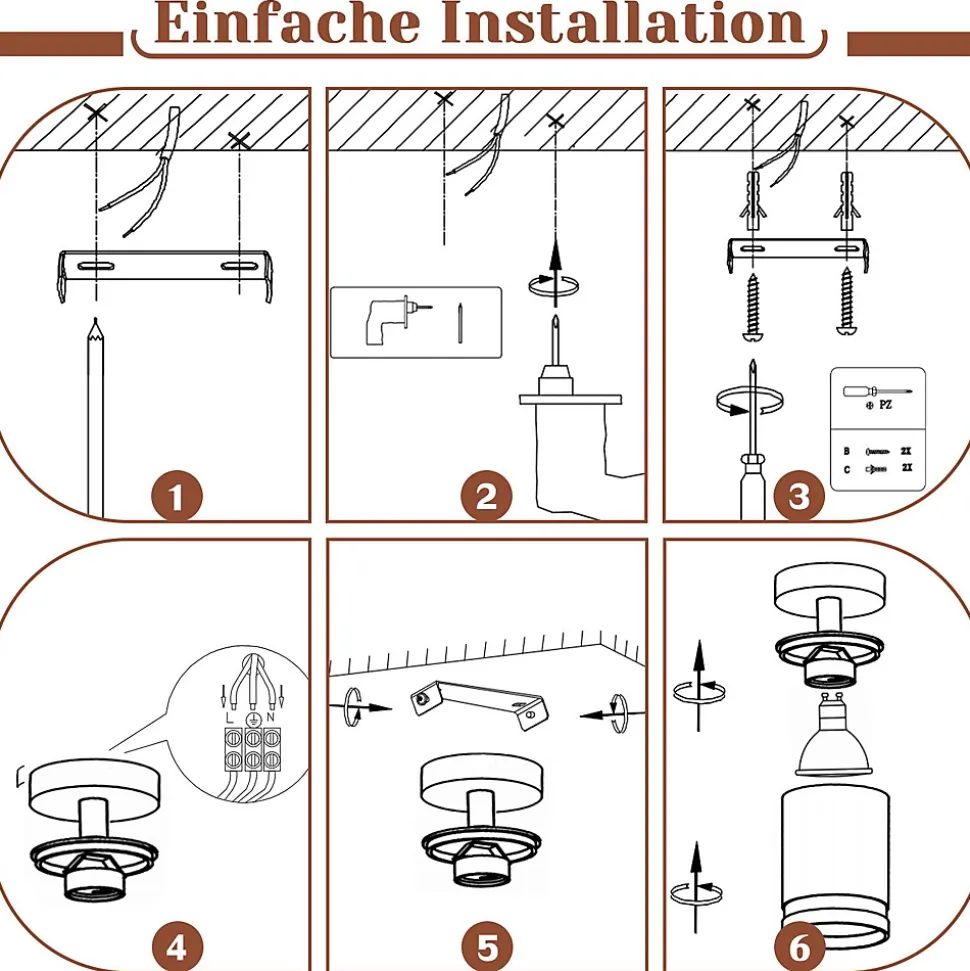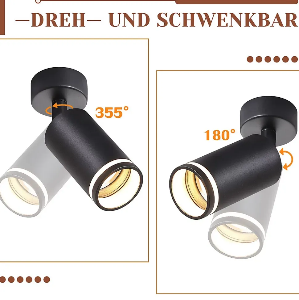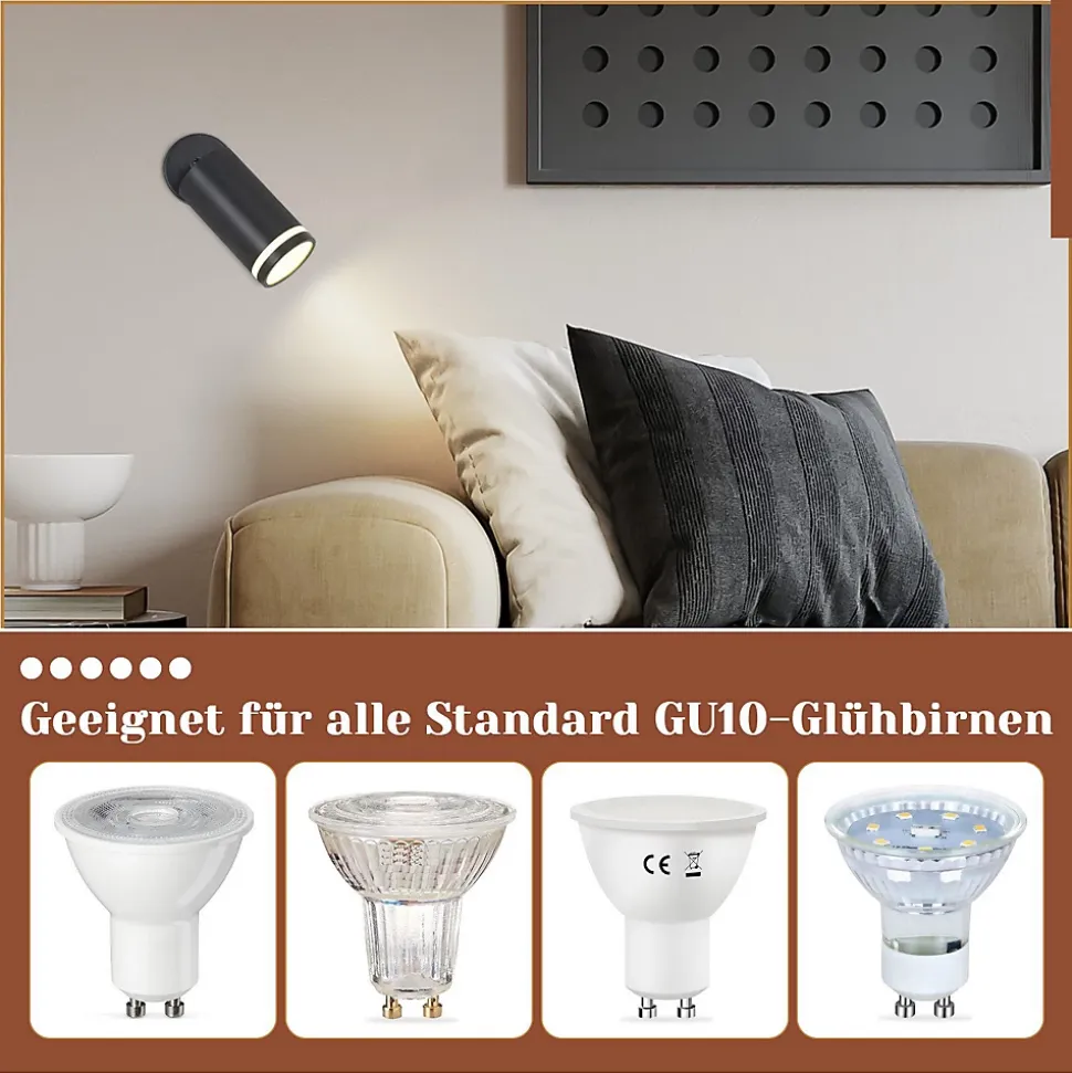 DESIGN MODERNE : Ce spot de plafond se distingue par son aspect moderne, qui est principalement dû à l’élégante finition de surface en noir mat. La couleur noir mat donne au plafonnier une touche moderne et offre un joli contraste avec les plafonds blancsROTATIF ET PIVOTANT : L’abat-jour des spots de plafond est cylindrique et peut être tourné à 355° à gauche et à droite et incliné à 180° de haut en bas grâce à l’articulation, chaque douille peut être ajustée dans n’importe quelle direction pour s’adapter à différentes zones de la pièce selon les besoins. éclairerAMPOULES INTERCHANGEABLES : Les plafonniers spots sont compatibles avec les ampoules GU10 d’une puissance MAX 40 W. Selon les besoins, vous pouvez sélectionner des culots de lampe blanc chaud, blanc froid ou RGB GU10. Remarque : les ampoules ne sont pas inclusesFACILE À INSTALLER : Le plafonnier noir est facile à assembler selon nos instructions d’installation, deux méthodes d’installation, la barre de spot robuste assure une installation facile et sûre au plafond, au mur. Les spots équipés de kits d’installation et de notice d’utilisationLARGES DOMAINES D’APPLICATION : Le spot GU10 mono-flamme au design moderne convient à de nombreux espaces : salon, chambre, couloir, chambre d’enfant, cuisine, balcon, escaliers, peintures murales, dressings, galeries, etc. Si vous avez des questions, vous pouvez nous contacter à tout moment pour fournir un service client 24 heures sur 24 avec une grande efficacité