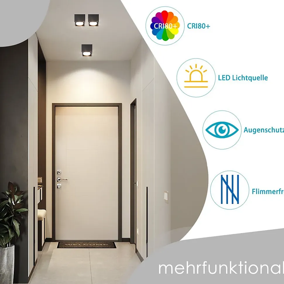 ◇ Matériaux préférés : ces spots de plafond convainquent par leur design blanc mat et leur finition en fer et aluminium de qualité supérieure. Cela le rend non seulement durable, mais assure également une bonne dissipation de la chaleur pour un éclairage stable sur une longue période.◇ Source lumineuse remplaçable : ce spot de plafond offre la possibilité de remplacer vous-même la source lumineuse. Ceci est non seulement flexible, mais prolonge également la durée de vie des barres de projecteurs. Avec son design simple et élégant, il s’adapte parfaitement à différents styles de décoration. Cela vous permet de profiter longtemps du plafonnier◇ Réglage rotatif Ce spot peut être tourné à 120° pour ajuster l’angle d’éclairage et la zone selon les besoins. Cela fait de cette lampe une solution d’éclairage flexible. Leur conception polyvalente permet une utilisation dans des environnements résidentiels, commerciaux et de bureau pour fournir un éclairage idéal◇ PROTECTION DES YEUX : Cette lampe montée en surface est spécialement conçue contre l’éblouissement et sans scintillement pour protéger vos yeux et éviter la fatigue et l’inconfort oculaires. Il est donc idéal pour une utilisation en intérieur comme les bibliothèques, les bureaux, les chambres, les salons, les couloirs, les cuisines, etc. Il offre un éclairage agréable et contribue à une ambiance ambiante confortable.