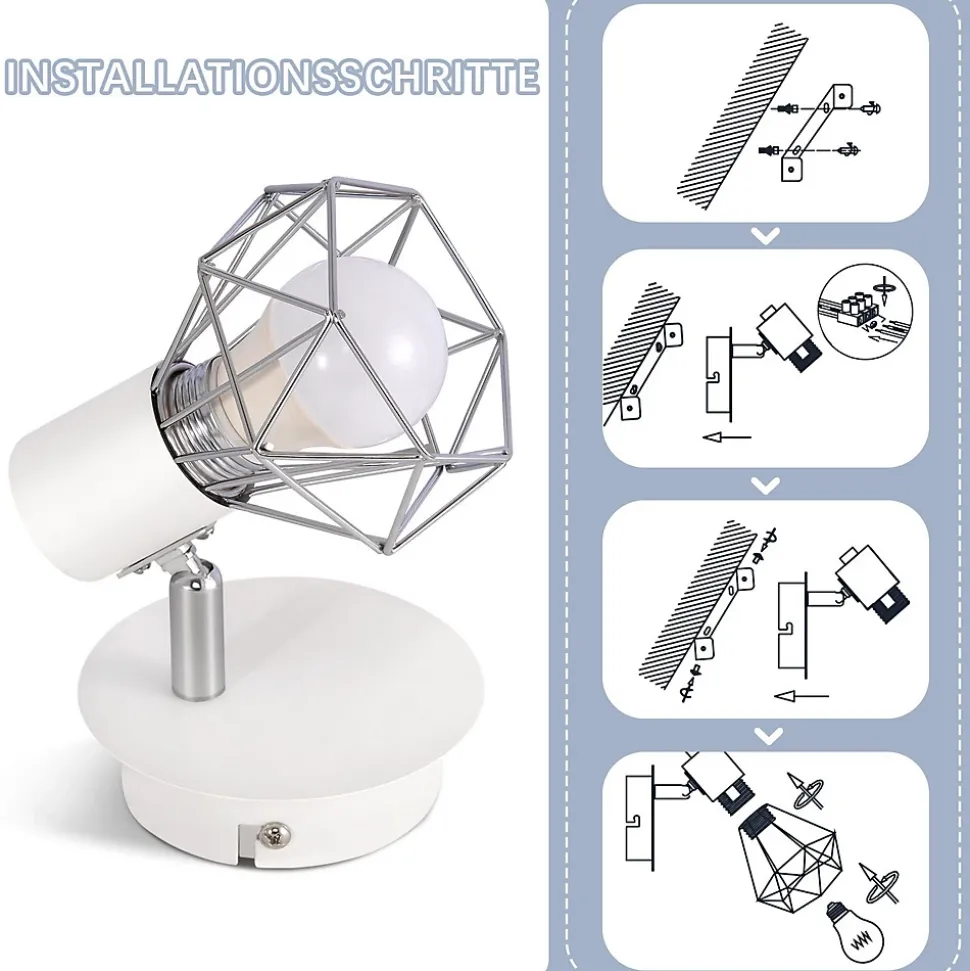 【Matériaux de haute qualité】 Le spot de plafond à 1 ampoule au design vintage pour usage intérieur est livré avec un abat-jour en maille métallique blanche, ce qui donne à cette applique murale d’intérieur rustique un look vintage unique qui ne se décolore pas facilement. Le pied est également en fil d’acier et est donc très robuste et durable. Le spot mural industriel est idéal pour l’éclairage intérieur.【Spots orientables】Avec cette applique murale vintage E14, vous pourrez ajuster la zone d’éclairage selon vos besoins en ajustant la tête pour mieux éclairer la pièce. L’angle réglable maximum de la tête est de 350° à gauche et à droite et de 90° de haut en bas, ce qui peut répondre aux différents besoins d’éclairage des différentes pièces.【Douille standard E14】 Ce spot mural d’intérieur convient à toutes les ampoules E14 (MAX.40W), par ex. Par exemple, lampes à économie d’énergie, ampoules, tension 220-240 V, classe de protection IP20, convient uniquement pour une utilisation en intérieur (les ampoules ne sont pas incluses).【Spots de plafond pour toutes les occasions】 Avec son design rétro simple, cette applique murale blanche peut être intégrée dans de nombreuses pièces et fournit un éclairage élégant et fonctionnel dans les couloirs, les cages d’escalier, les chambres, les salons et salles à manger, les couloirs, les cafés, les bars, les restaurants, les hôtels. ainsi que des salles d’étude. L’emplacement d’installation peut être choisi en fonction de vos besoins réels.【Installation facile】 Ce spot mural est livré avec tous les accessoires de montage (ampoules non incluses) et peut être installé rapidement et facilement.